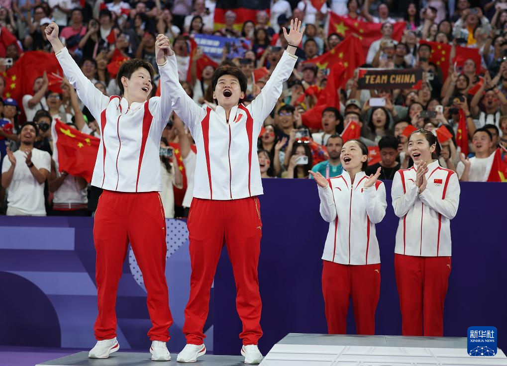 8月3日,陈清晨(左)/贾一凡庆祝胜利。