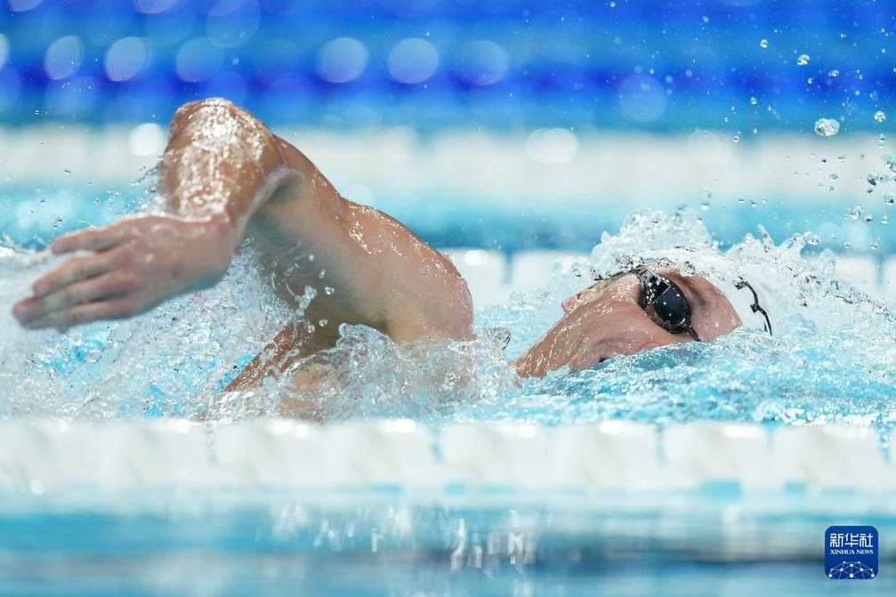 当日,巴黎奥运会游泳项目男子1500米自由泳预赛在拉德芳斯体育馆举行。