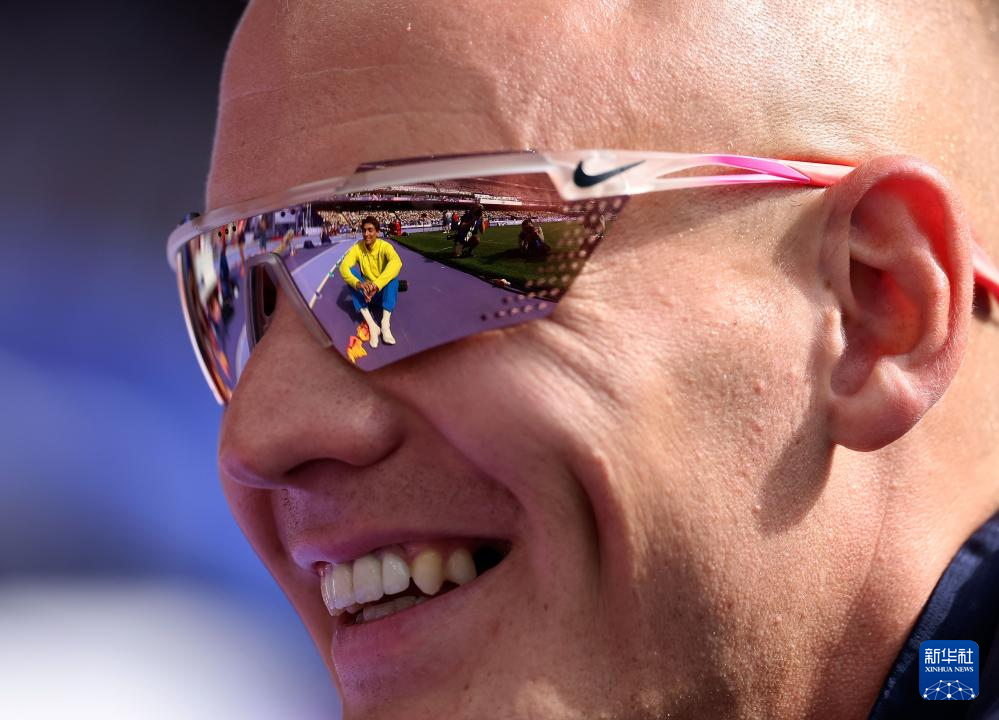 这是8月3日从美国选手肯德里克斯太阳镜里看到的瑞典选手杜普兰蒂斯。