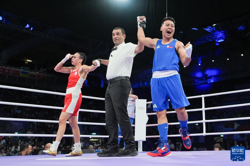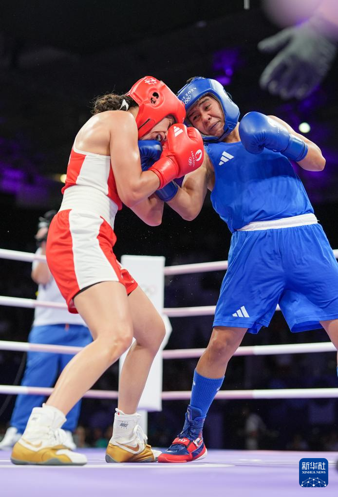 当日,巴黎奥运会拳击项目女子57公斤级16强赛在北巴黎竞技场举行。