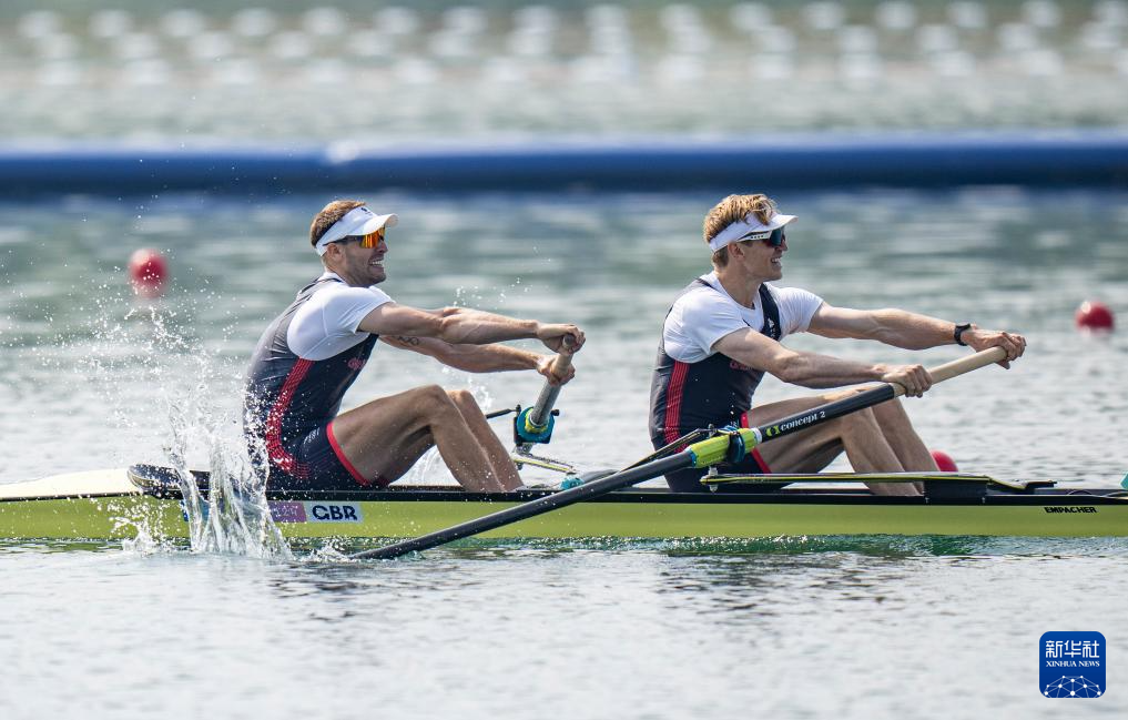 8月2日,获得亚军的英国组合威恩·格里菲思(左)和乔治在比赛中。新华社记者 孙非 摄