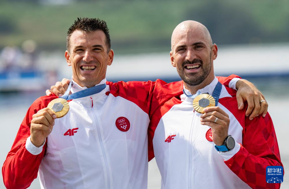 8月2日,获得冠军的克罗地亚组合马丁·辛科维奇(左)和瓦伦特·辛科维奇在比赛中。新华社记者 孙非 摄