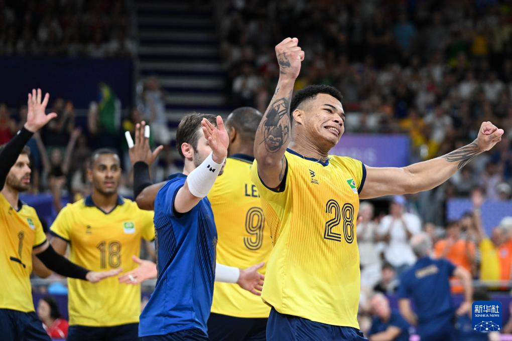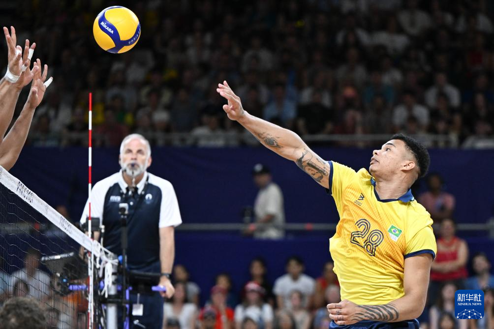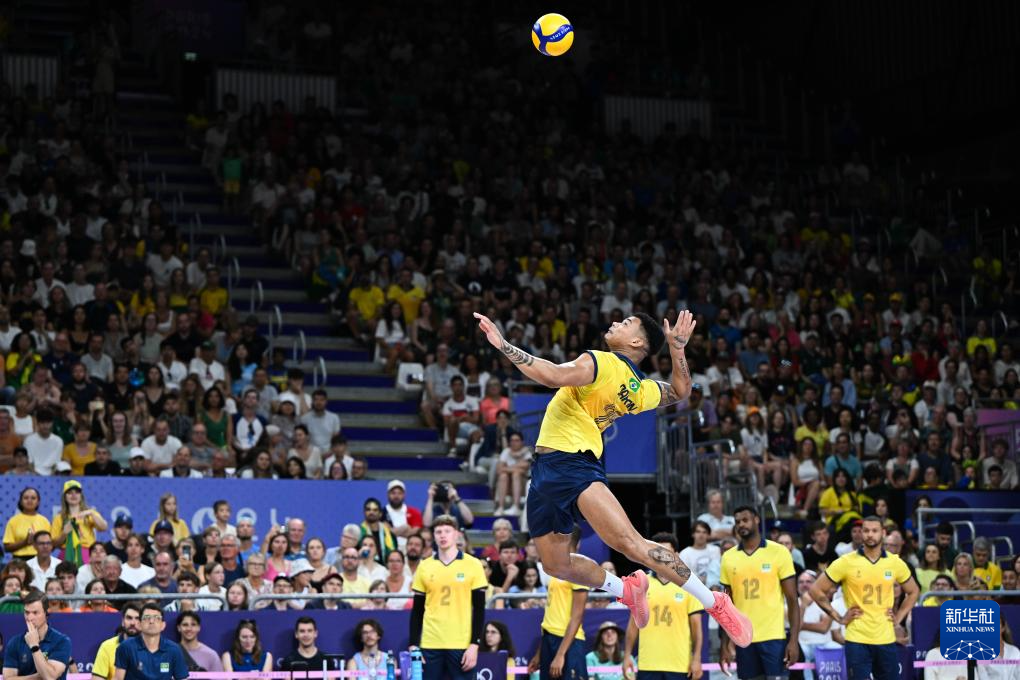 当日,在南巴黎竞技场举行的巴黎奥运会男子排球小组赛B组比赛中,巴西队3比0战胜埃及队。