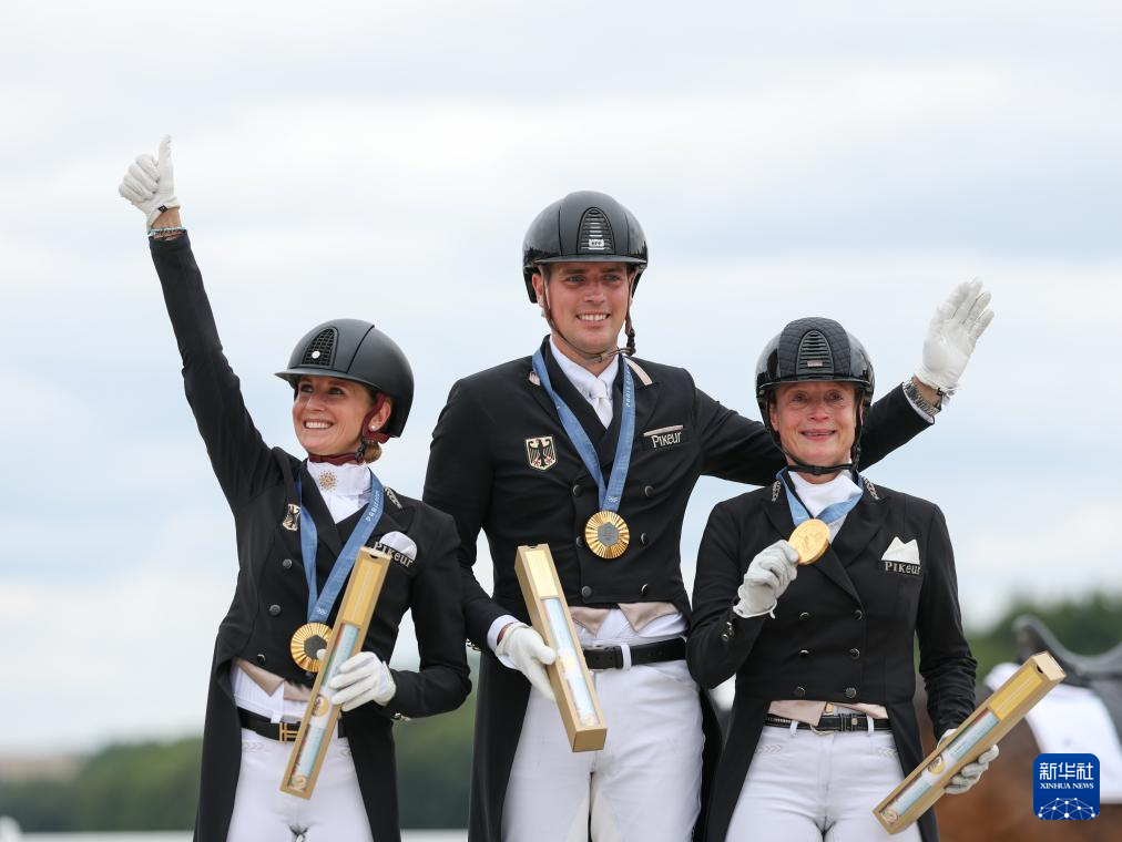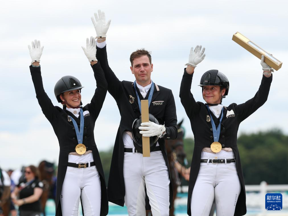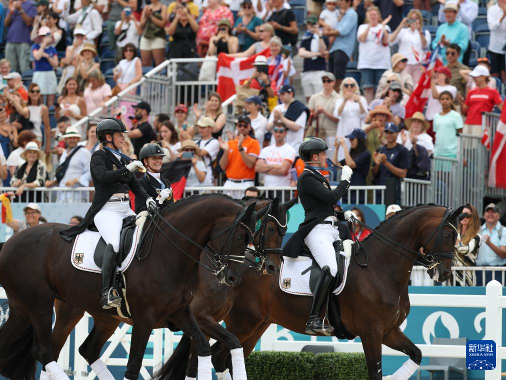 当日,在巴黎奥运会马术团体场地盛装舞步大奖赛决赛中,德国队获得冠军,丹麦队、英国队分获亚军、季军。