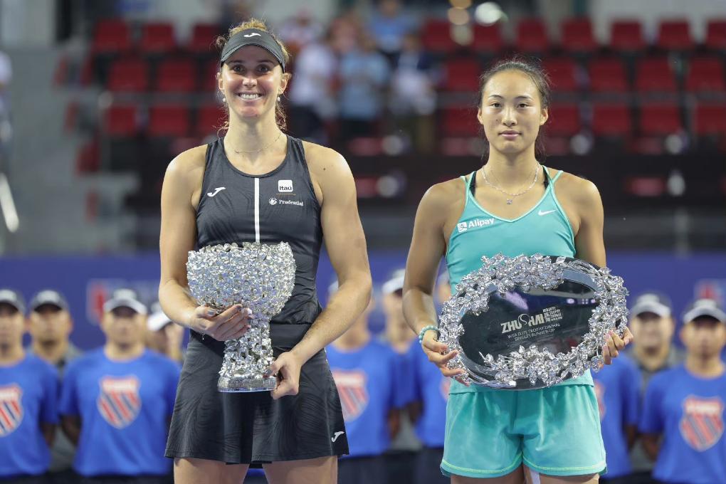彼时在珠海,郑钦文带着伤病一路杀进决赛,吃了止痛药上场的她在经历了近三个小时的鏖战后,不敌巴西人玛雅屈居亚军。