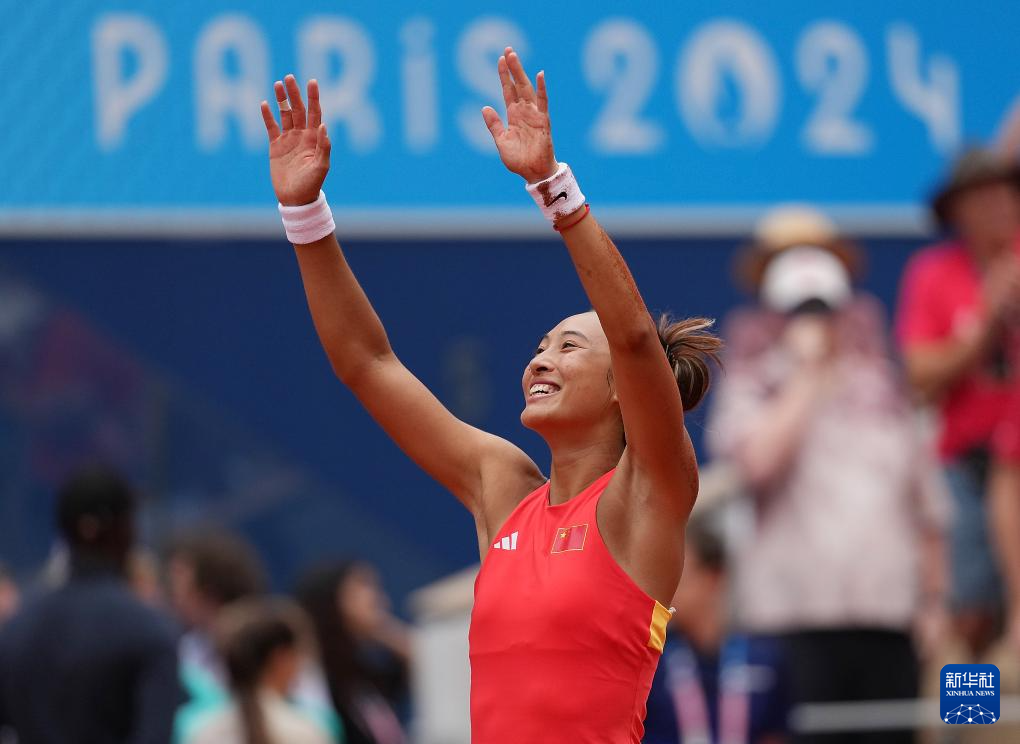 当日,在巴黎奥运会网球女子单打金牌赛中,中国选手郑钦文2比0战胜克罗地亚选手维基奇,夺得金牌。