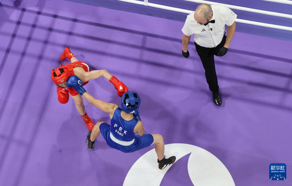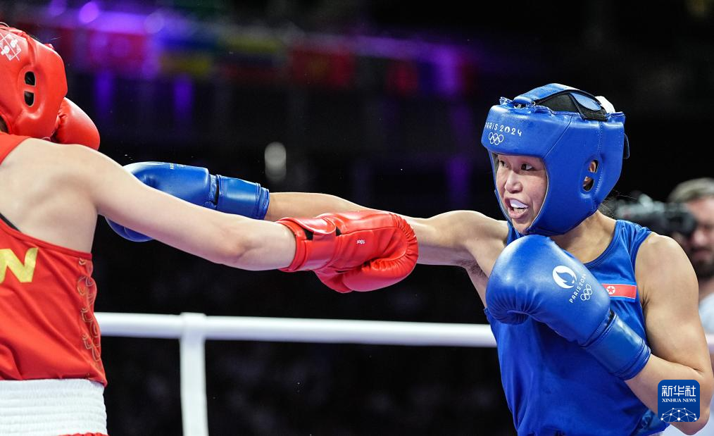 8月4日,朝鲜选手方哲美(左)在比赛中。新华社记者 江文耀 摄