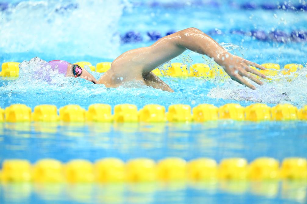 在巴黎奥运会男子100米自由泳决赛中夺冠