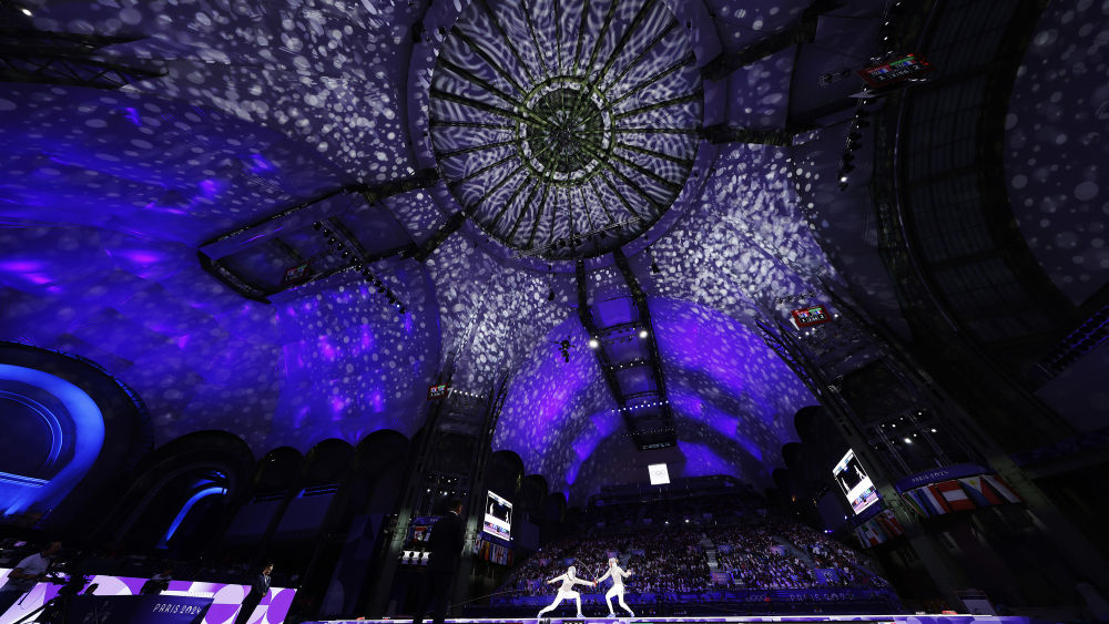 ↑7月29日,在巴黎大皇宫举行的击剑项目女子个人佩剑决赛中,法国选手玛农·阿皮蒂-布吕内与队友萨拉·巴尔泽尔对决。