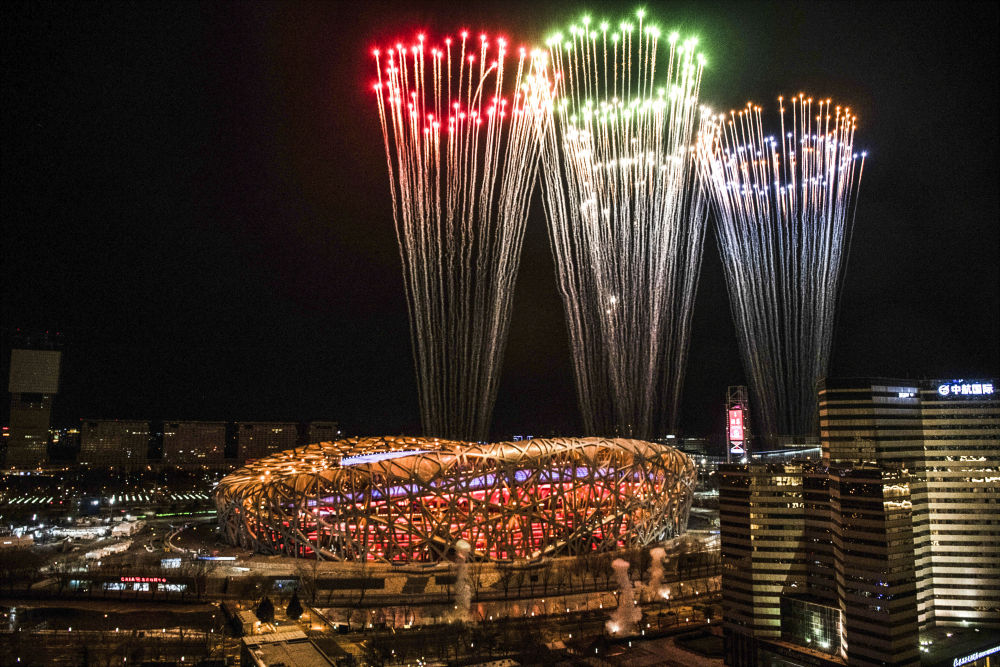 ↑2022年2月20日晚,北京第二十四届冬季奥林匹克运动会闭幕式在国家体育场“鸟巢”举行。“鸟巢”位于北京中轴线的延伸线上。