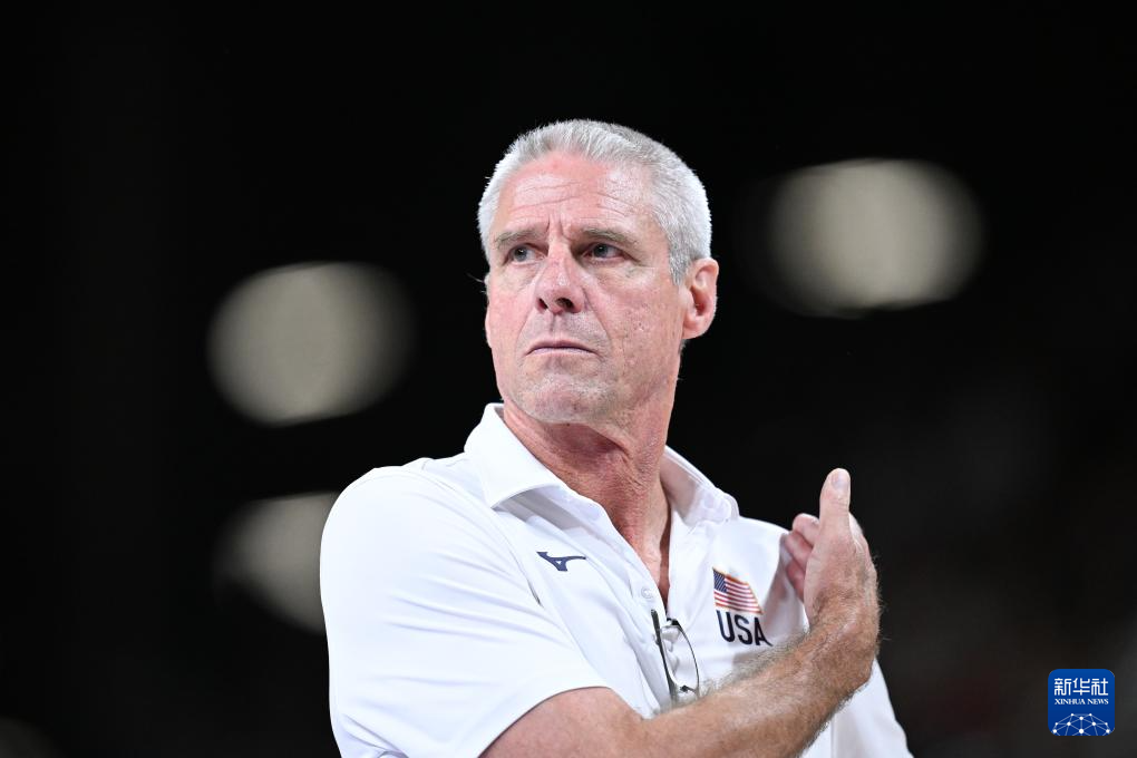 8月4日,美国队主教练基拉伊在比赛中布置战术。