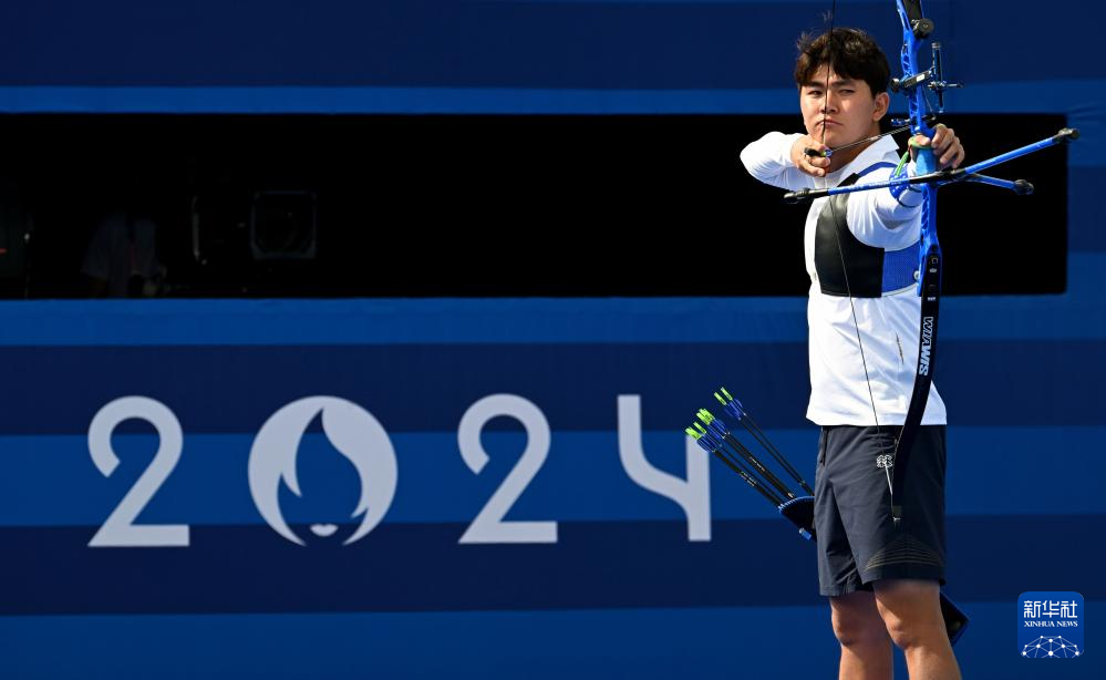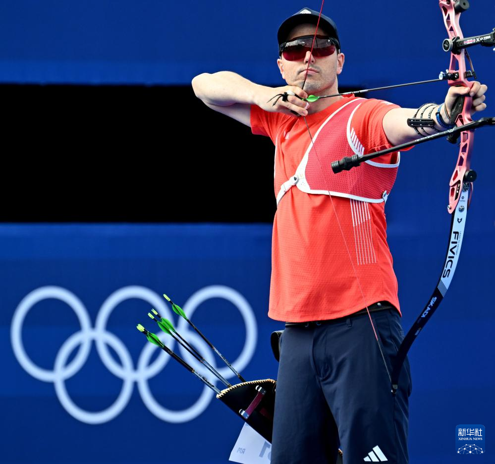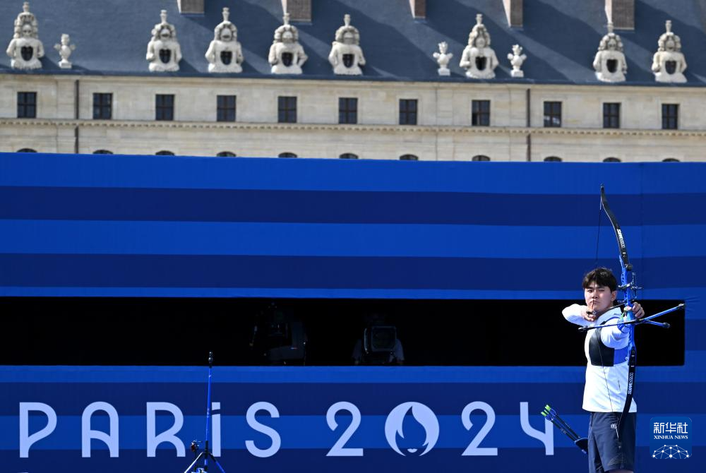 当日,巴黎奥运会射箭男子个人1/8淘汰赛在荣军院进行。