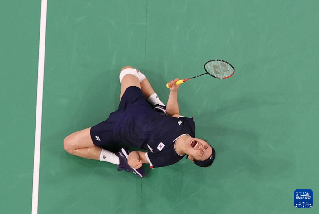 8月4日,韩国选手安洗莹庆祝胜利。