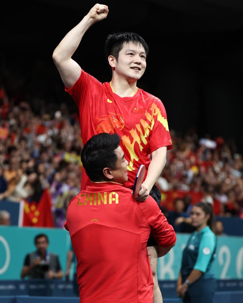 新华社巴黎8月5日电(记者岳冉冉、季嘉东、何磊静)樊振东的“大满贯”拼图就差一块,8月4日,他用时49分钟找到了它,拼上,严丝合缝。最后这块拼图叫“巴黎奥运会乒乓球男单冠军”。