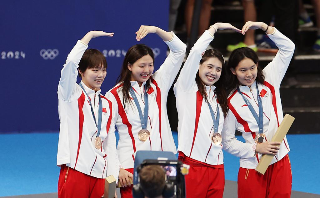 新华社巴黎8月4日电(记者刘旸、夏亮)巴黎奥运会游泳项目4日迎来最后一个比赛日,中国队打破美国长达40年的垄断,拿下男子4X100米混合泳接力金牌;张雨霏在个人和接力两项比赛中再夺两铜,把中国游泳运动员个人奥运奖牌总数的纪录提高到10枚。