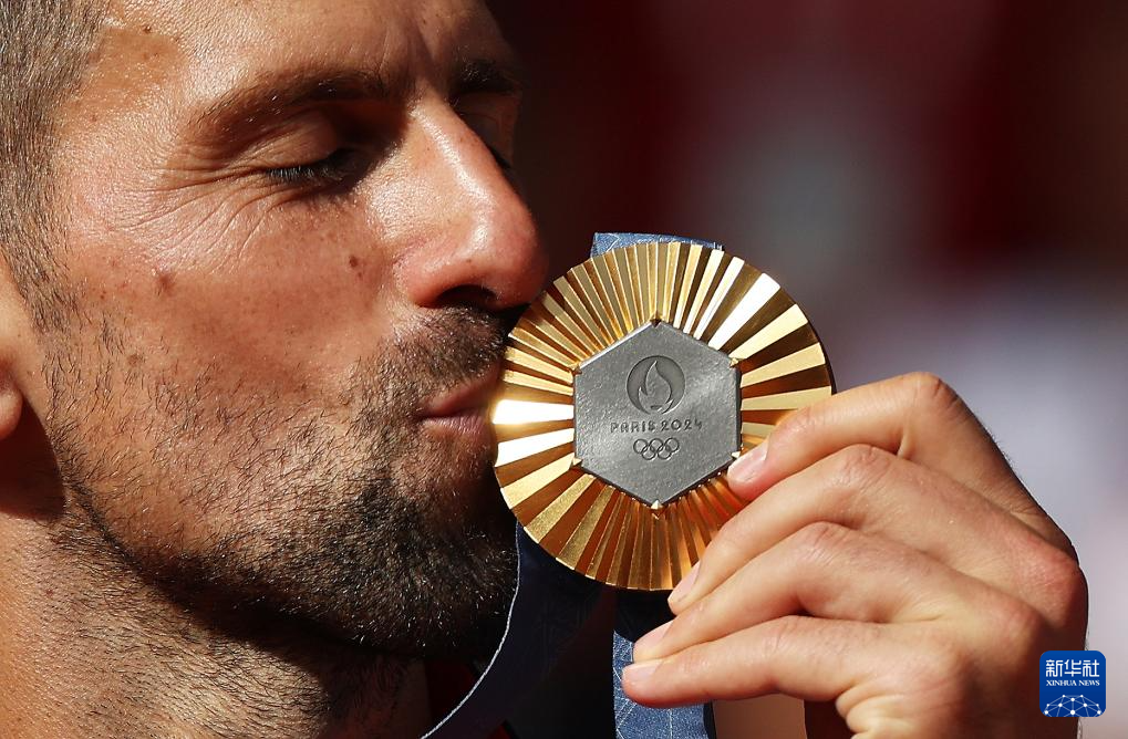 8月4日,冠军焦科维奇在颁奖仪式上亲吻金牌。