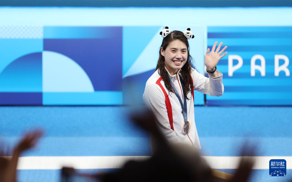 8月4日,季军中国选手张雨霏在颁奖仪式后。