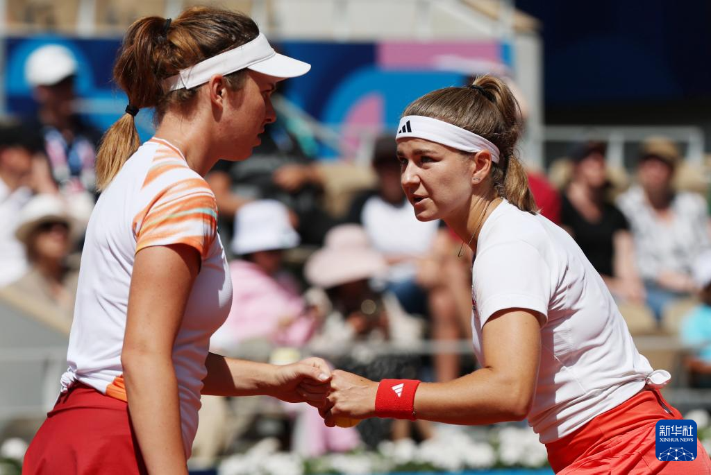 8月4日,捷克组合穆霍娃/诺斯科娃在比赛中相互鼓励。