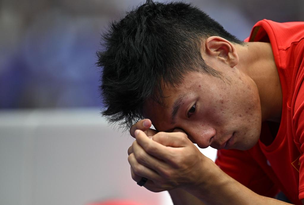 8月4日,中国选手石雨豪在未能晋级后落泪。新华社记者 宋彦桦 摄