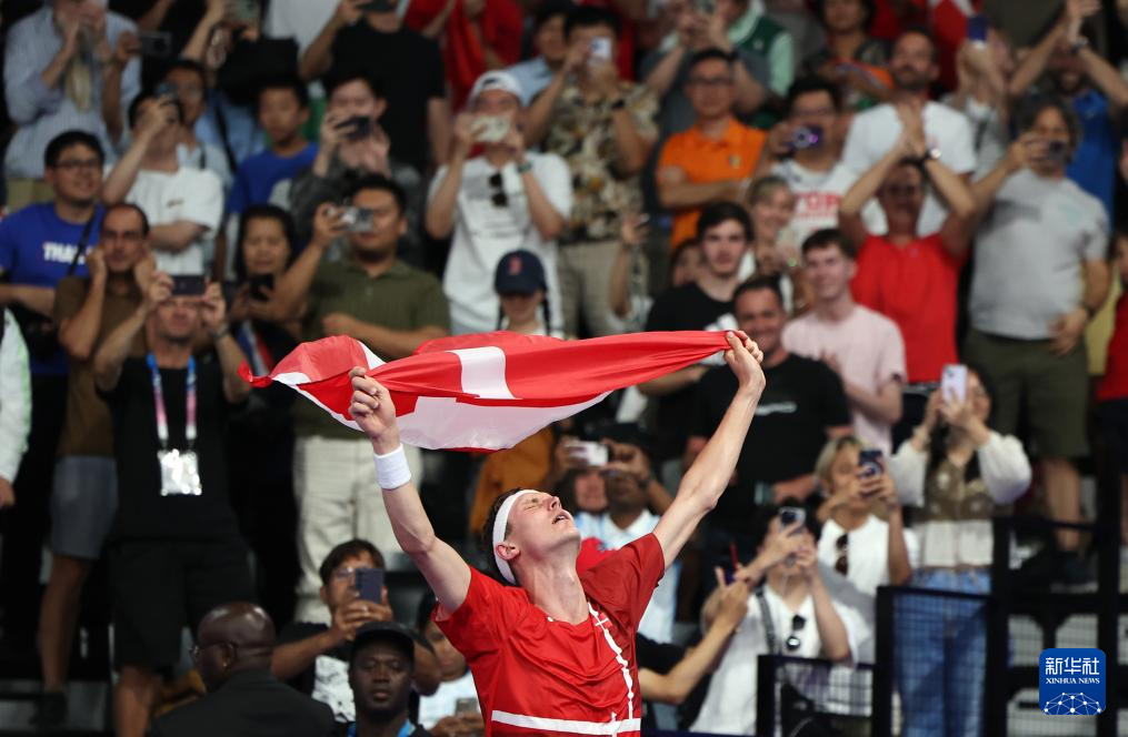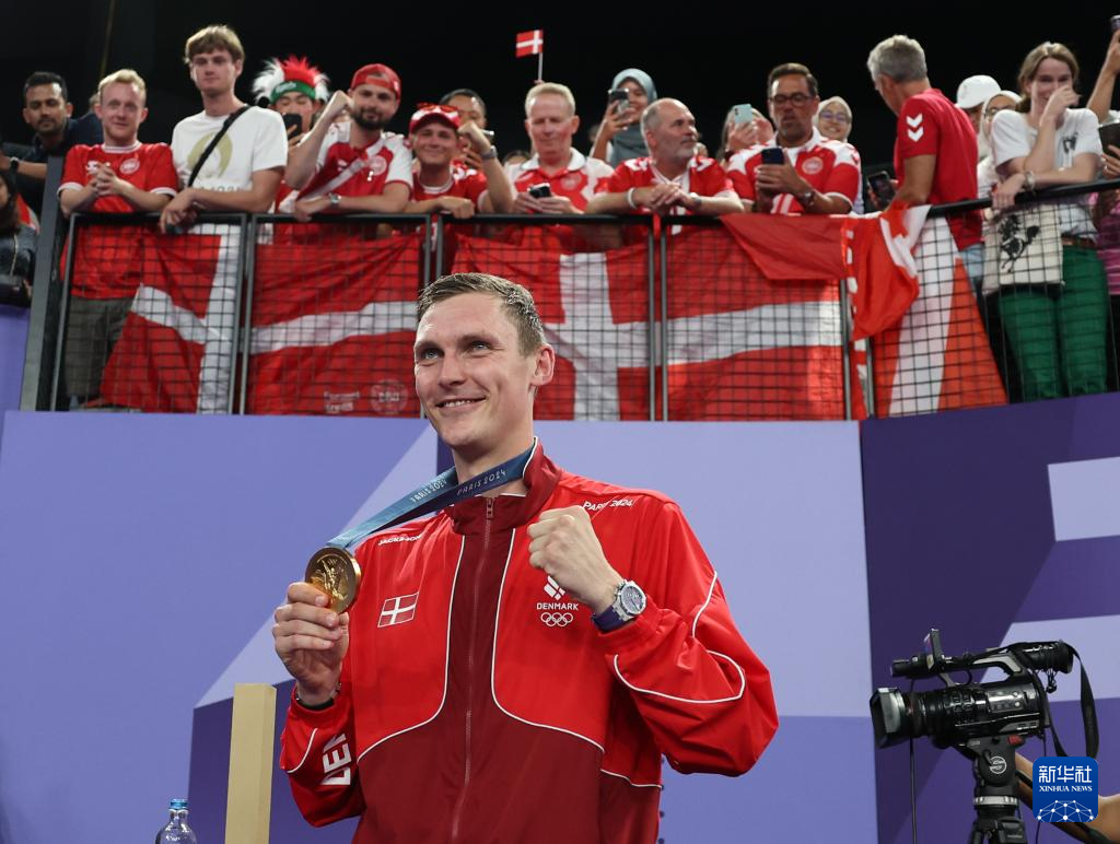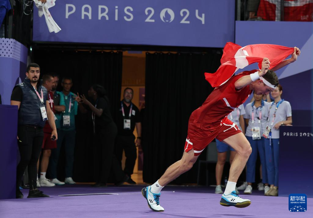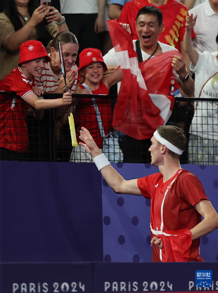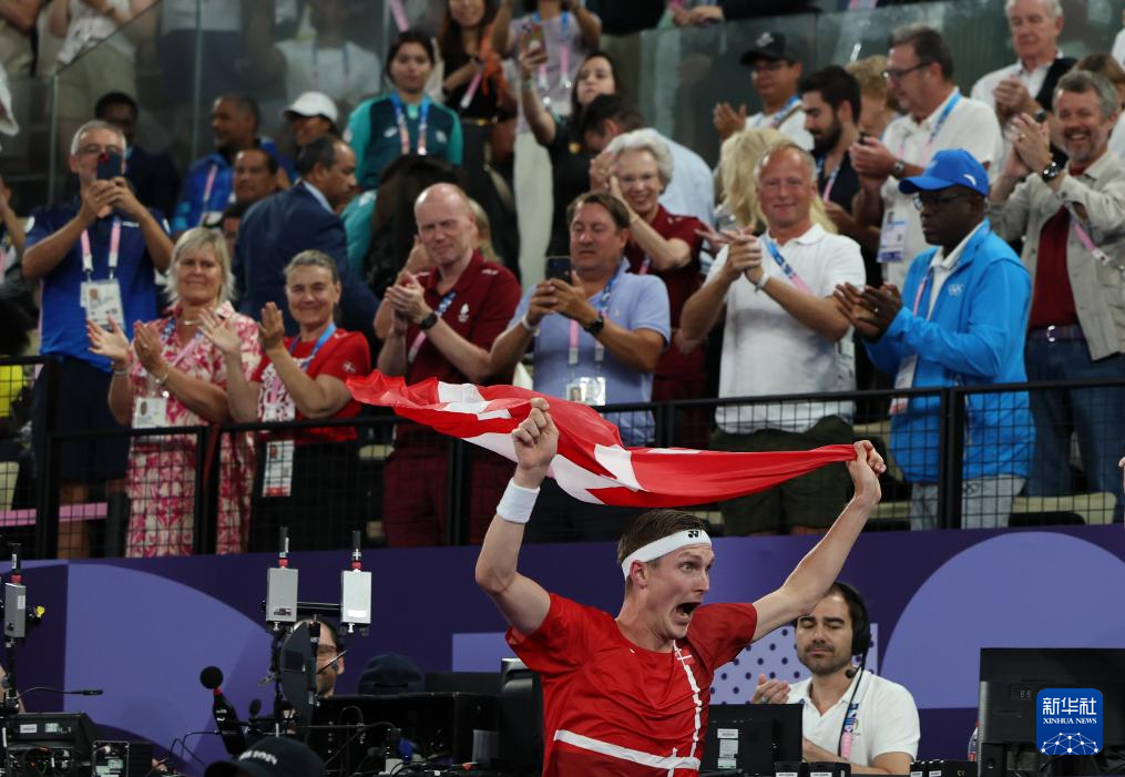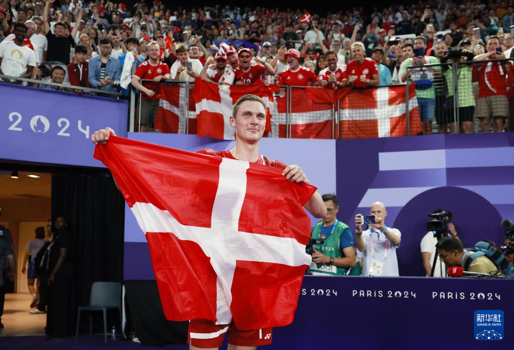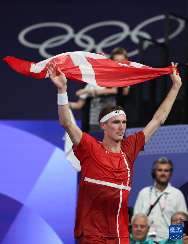 当日,在巴黎奥运会羽毛球项目男单决赛中,丹麦选手安赛龙2比0战胜泰国选手昆拉武特,夺得冠军。