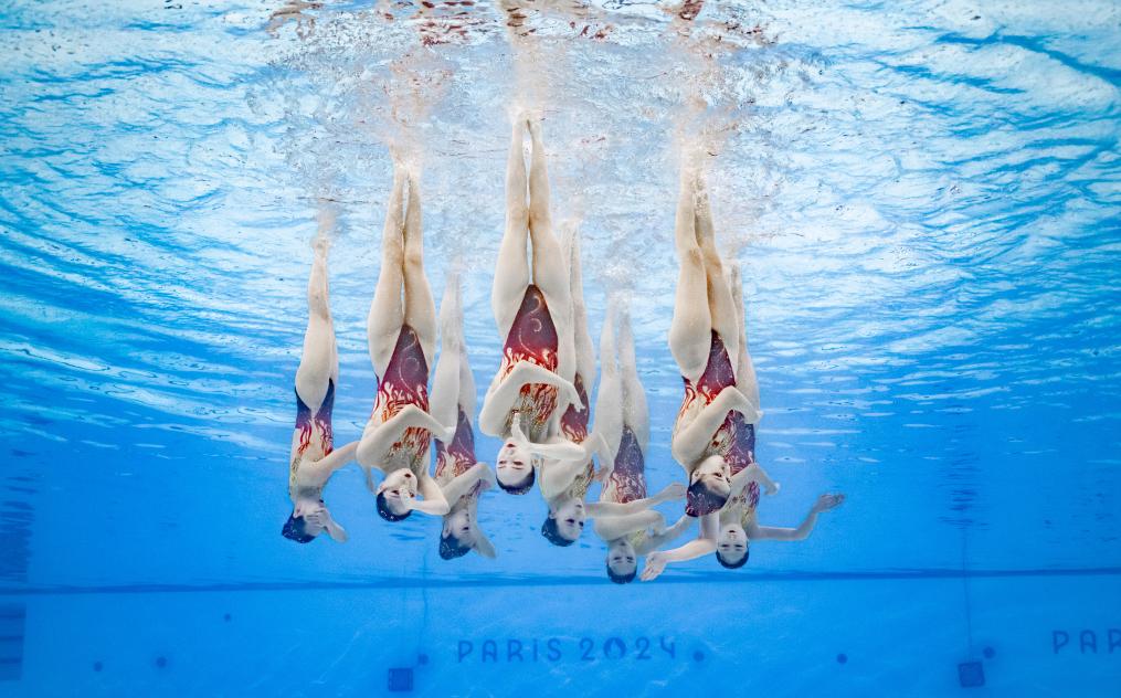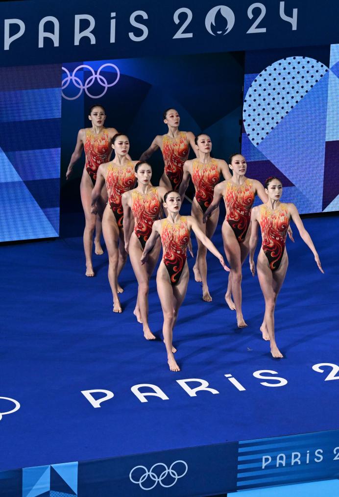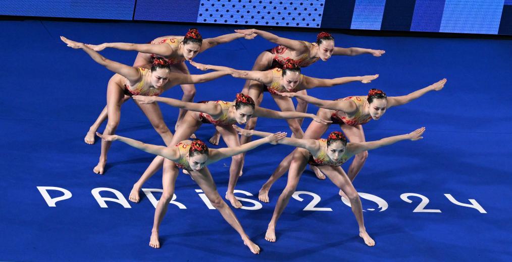 新华社巴黎8月5日电(记者夏亮、周欣)5日晚,花样游泳项目比赛在巴黎水上运动中心拉开大幕,在集体技术自选比赛中,压轴出场的中国队以313.5538的高分排名第一。