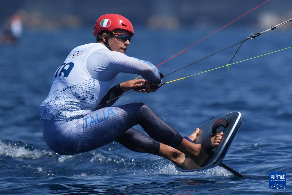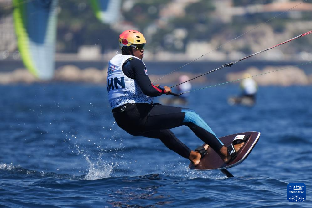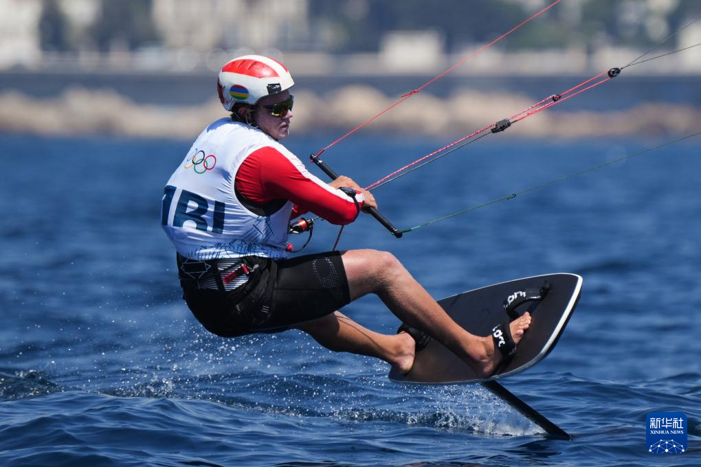 当日,2024年巴黎奥运会帆船项目男子风筝板比赛在法国马赛港继续进行。