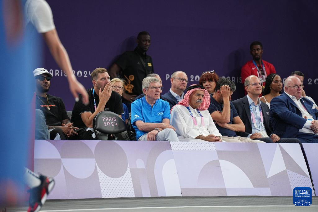 8月5日,国际奥委会主席巴赫(中)在场边观赛。