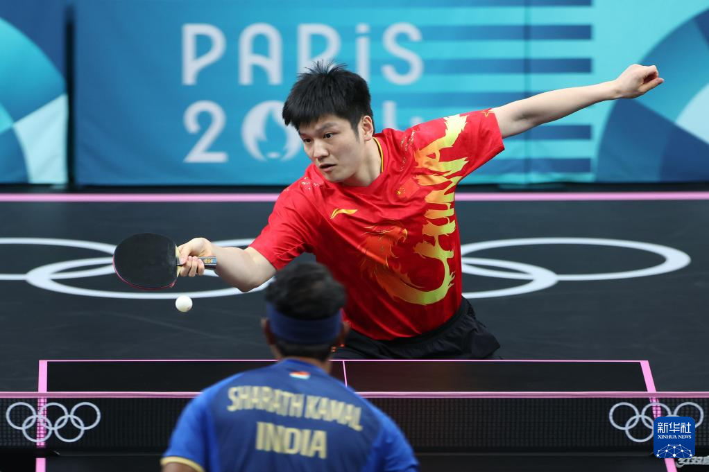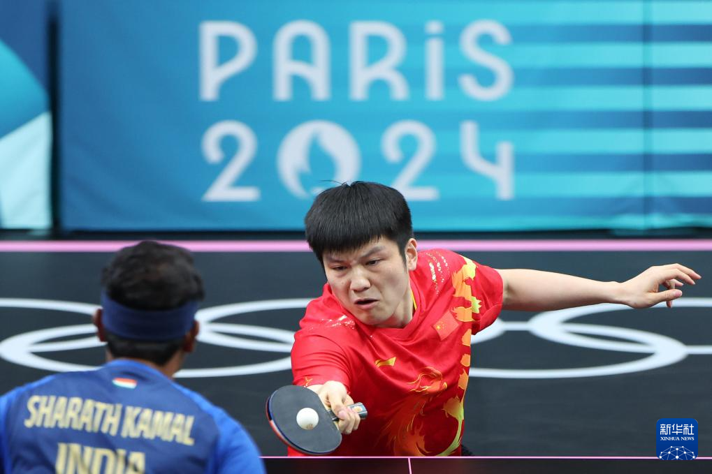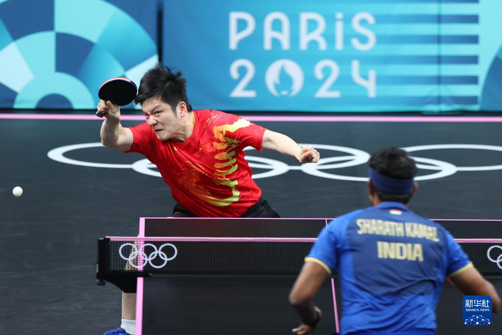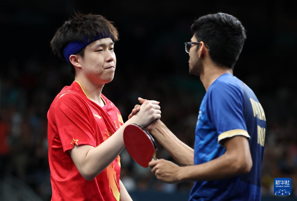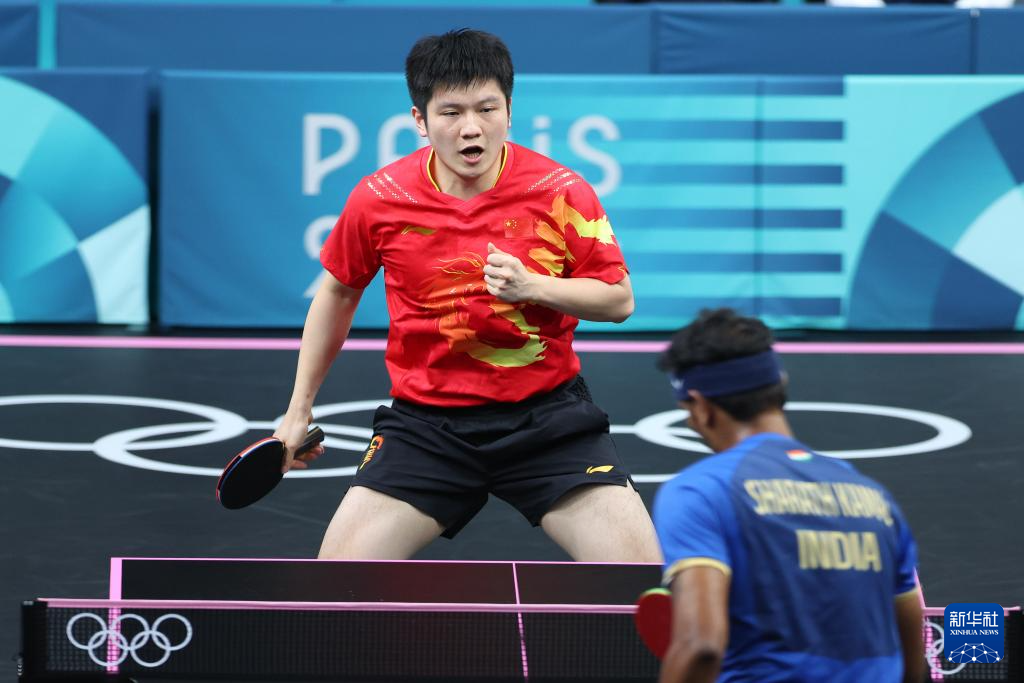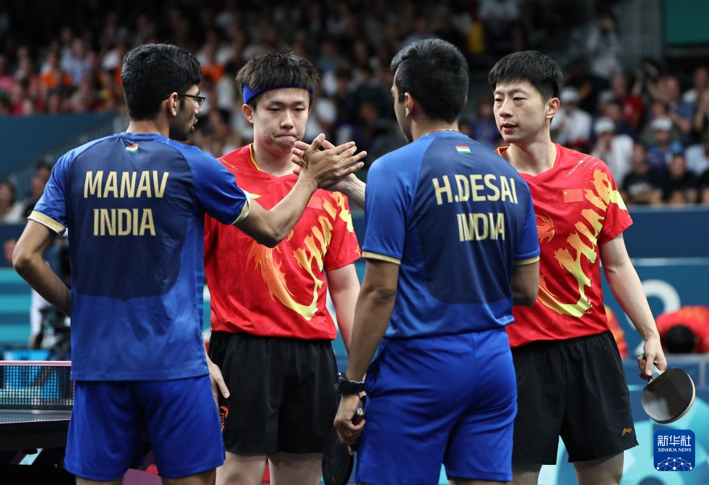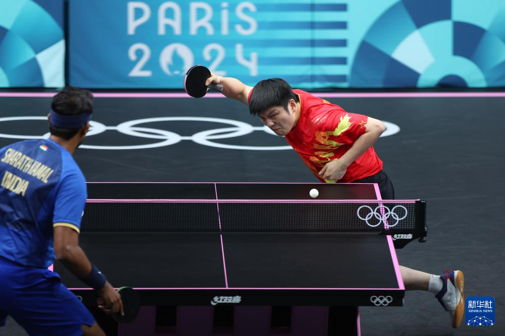当日,在巴黎奥运会乒乓球男团16强赛的比赛中,中国队3比0战胜印度队,晋级八强。