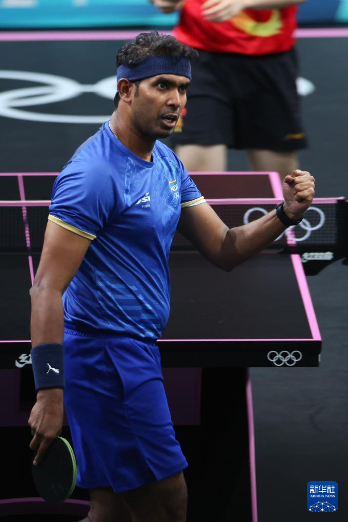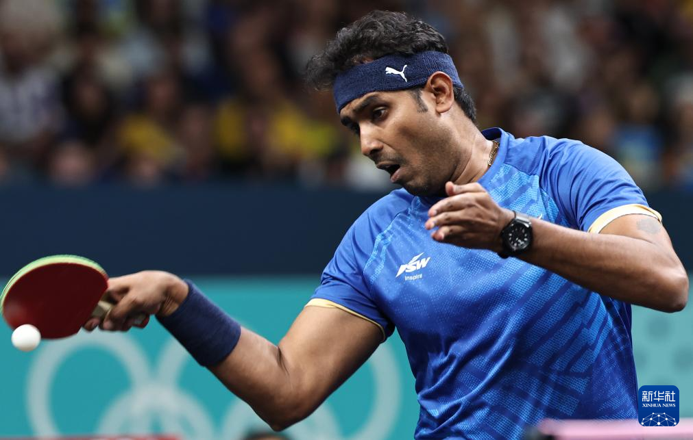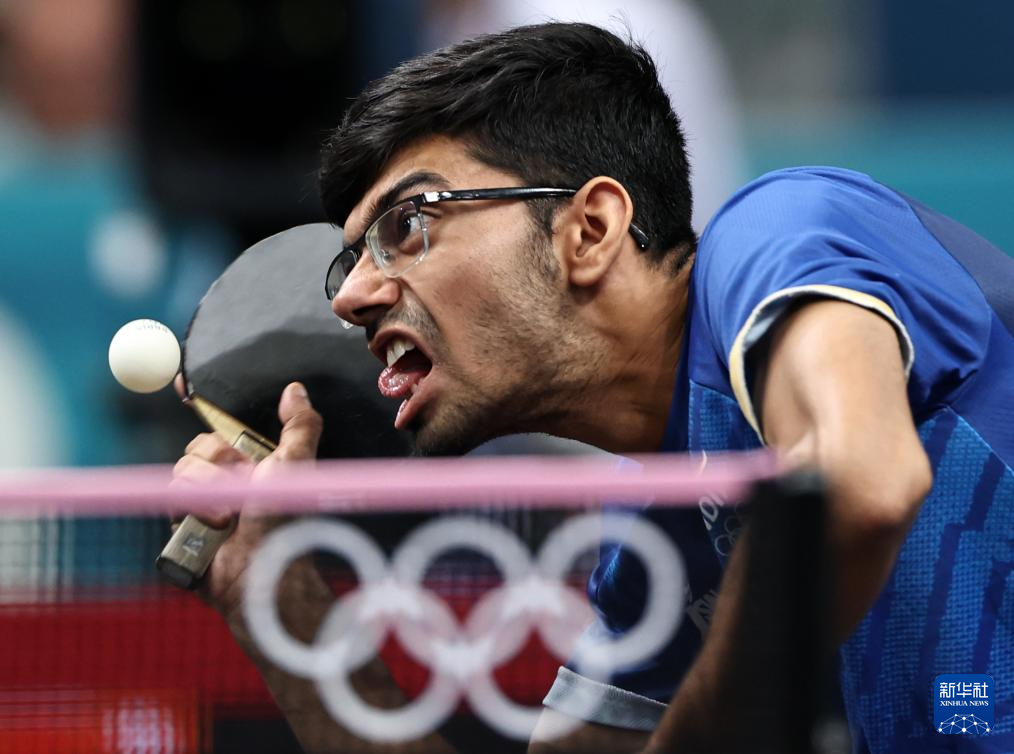 8月6日,印度选手阿昌塔在比赛中。他1比3不敌中国选手樊振东。新华社记者 刘续 摄