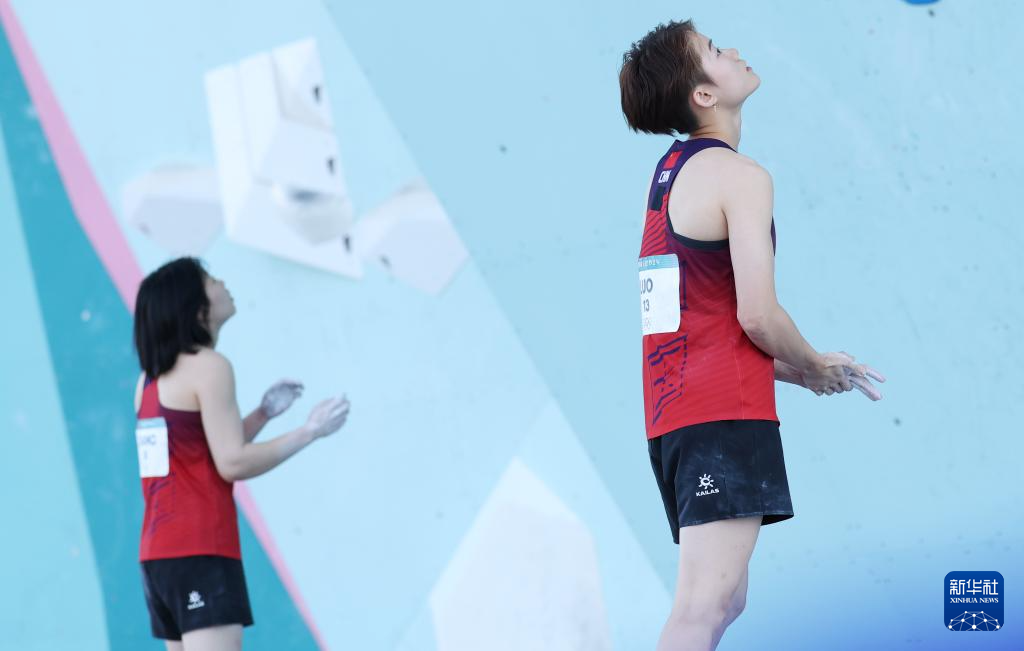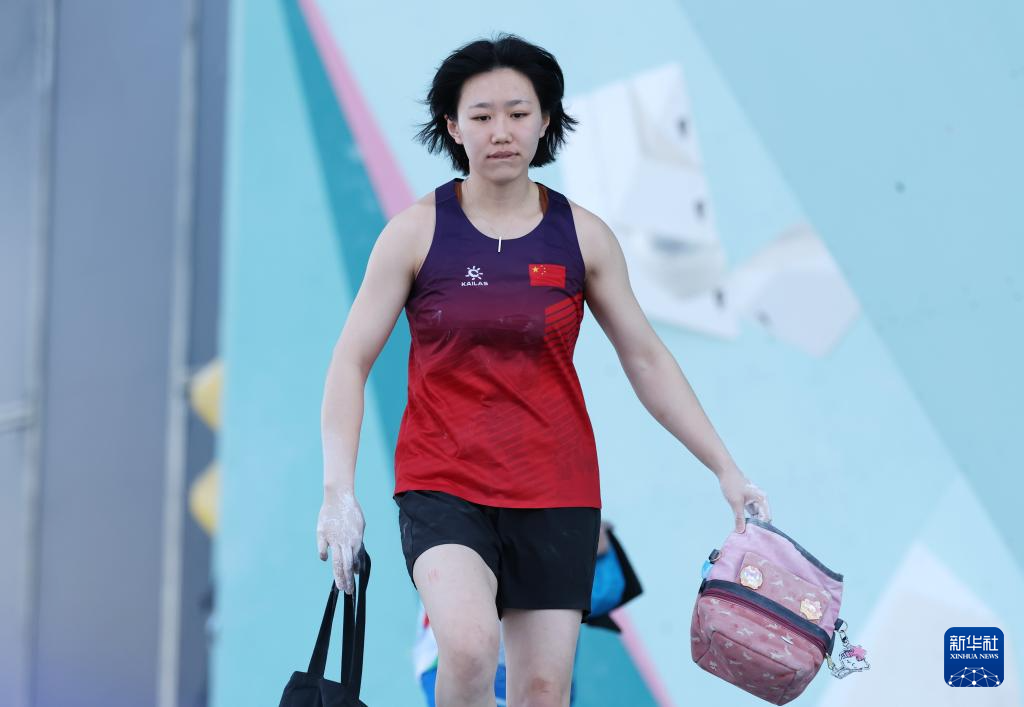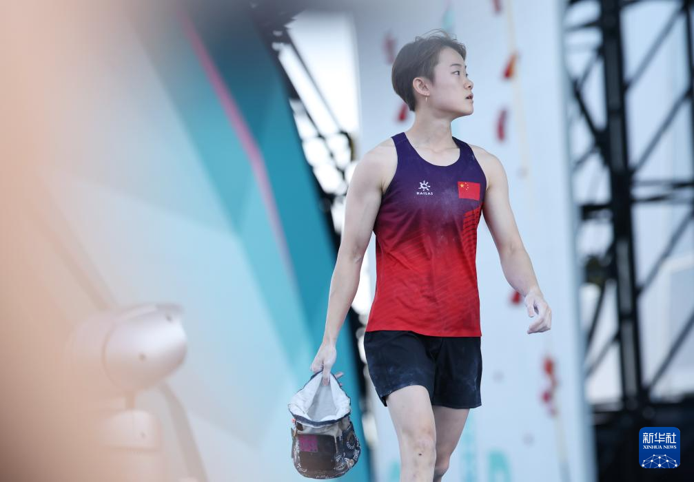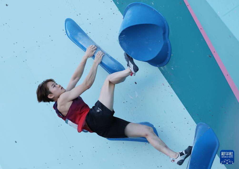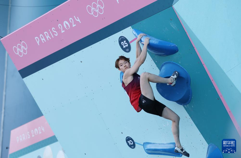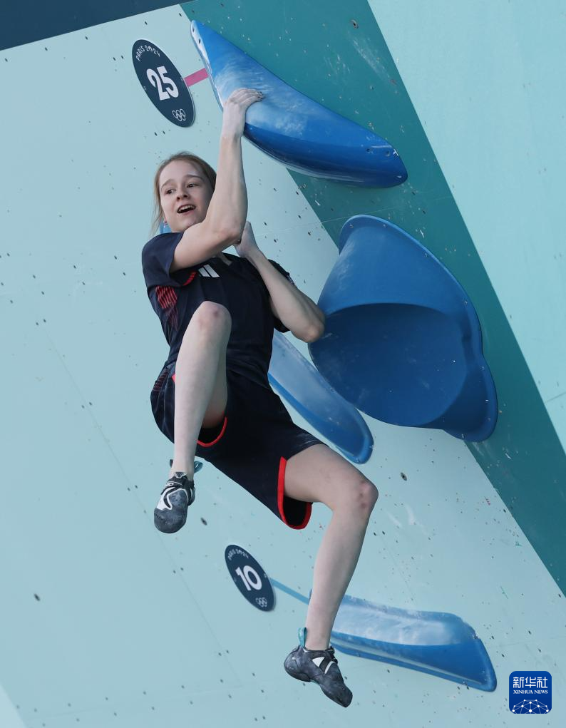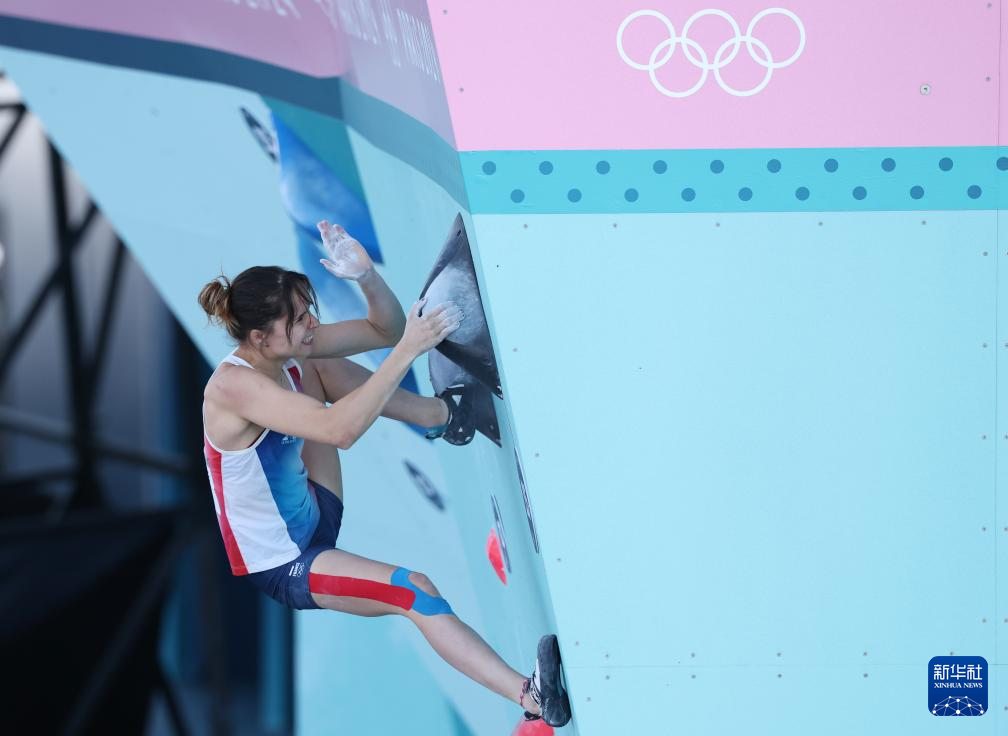 当日,巴黎奥运会攀岩项目女子全能半决赛攀石赛在勒布尔歇运动攀岩中心举行。