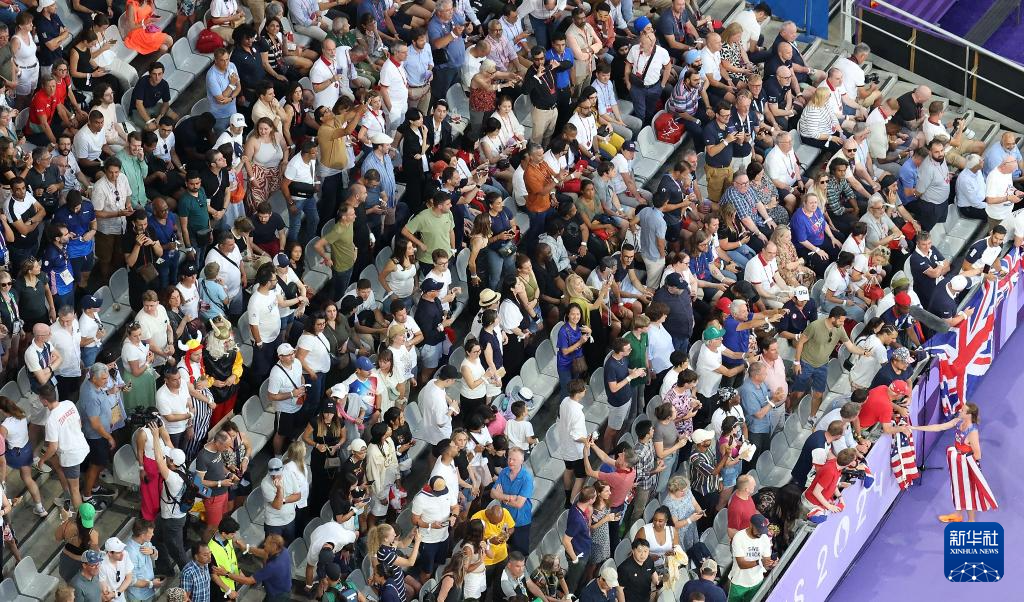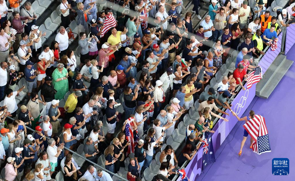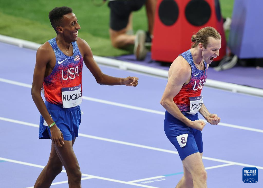 8月6日,冠军美国选手霍克(右)和队友努古斯在赛后庆祝。