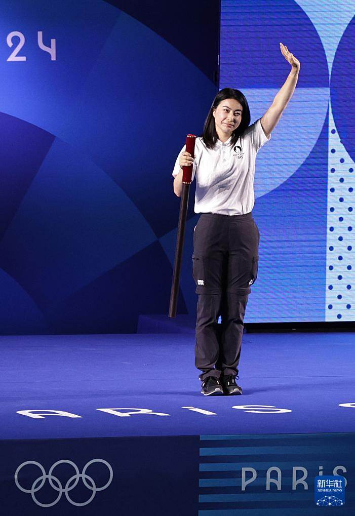8月7日,世界泳联跳水技术委员会委员郭晶晶为跳水男子3米跳板半决赛开赛。新华社记者 张玉薇 摄