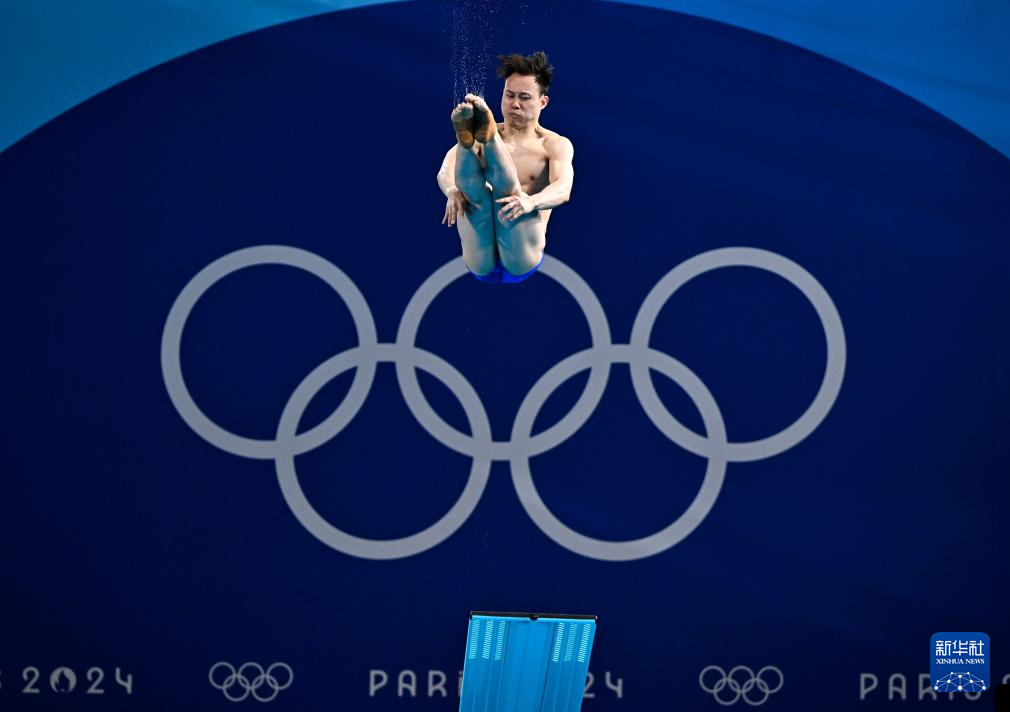 当日,巴黎奥运会跳水项目男子3米板半决赛在巴黎奥林匹克水上运动中心举行。