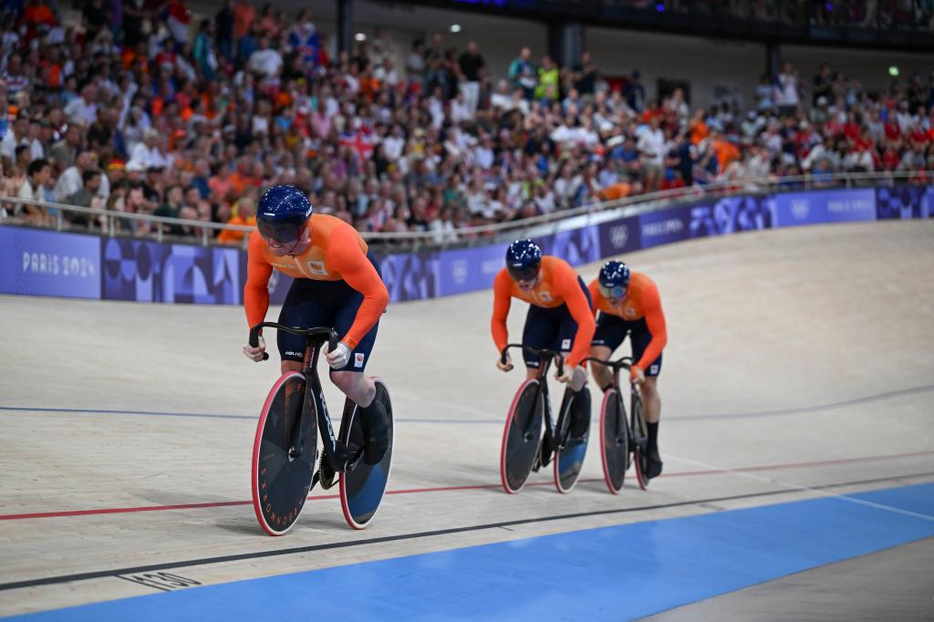 在该项目决赛中,荷兰人犹如一道闪电迅速划过伊夫林省圣康坦自行车馆,他们刷新自己刚刚创造的世界纪录,让现场氛围达到了高潮。英国队获得亚军,澳大利亚队收获该项目铜牌。