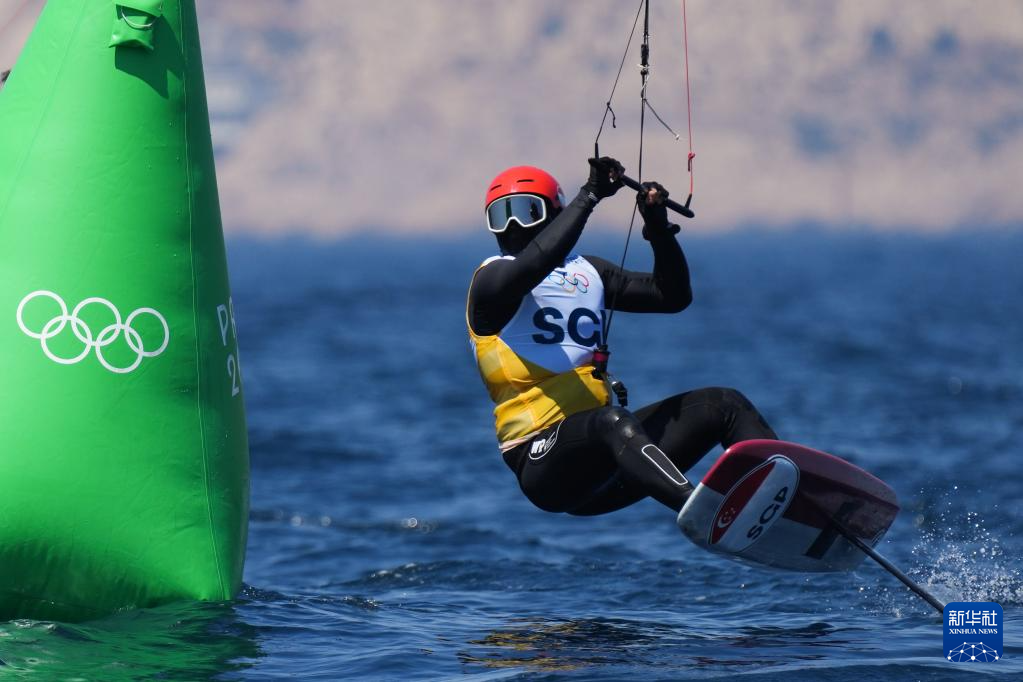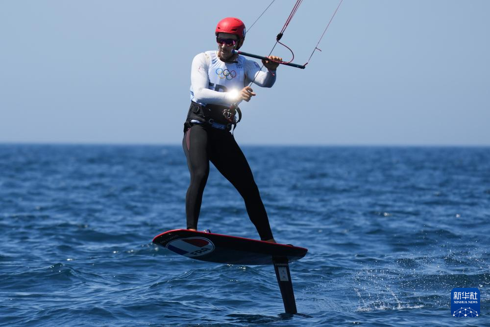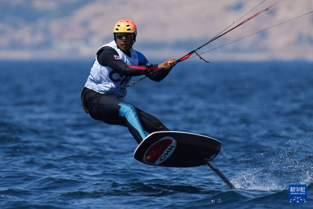 当日,2024年巴黎奥运会帆船项目男子风筝板比赛在法国马赛港继续进行。中国选手黄齐滨暂列第十位。