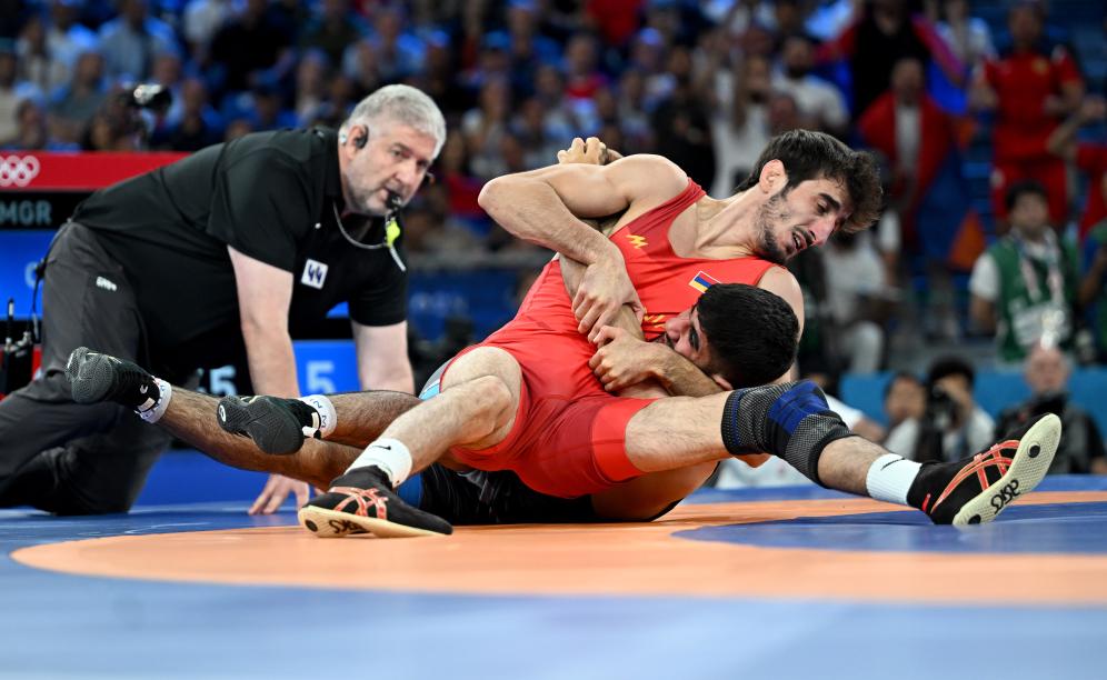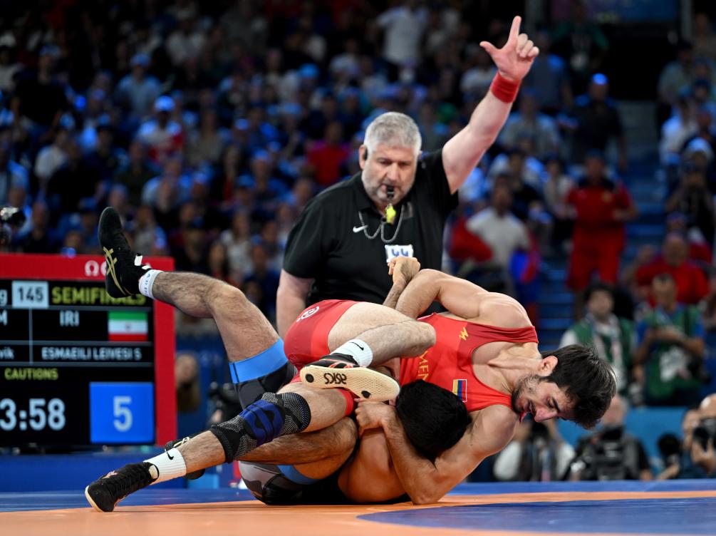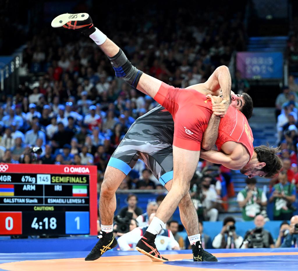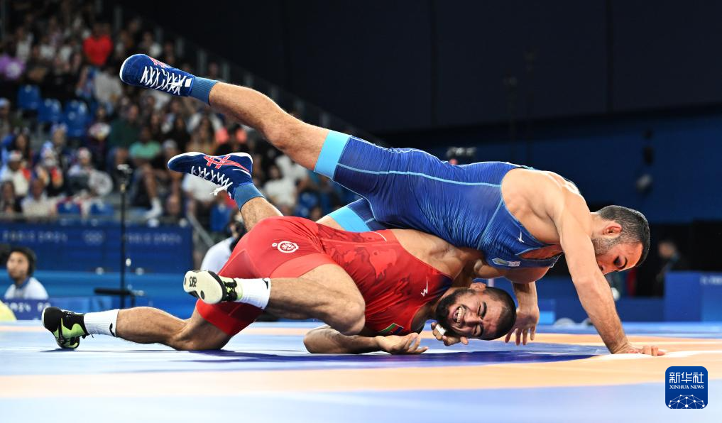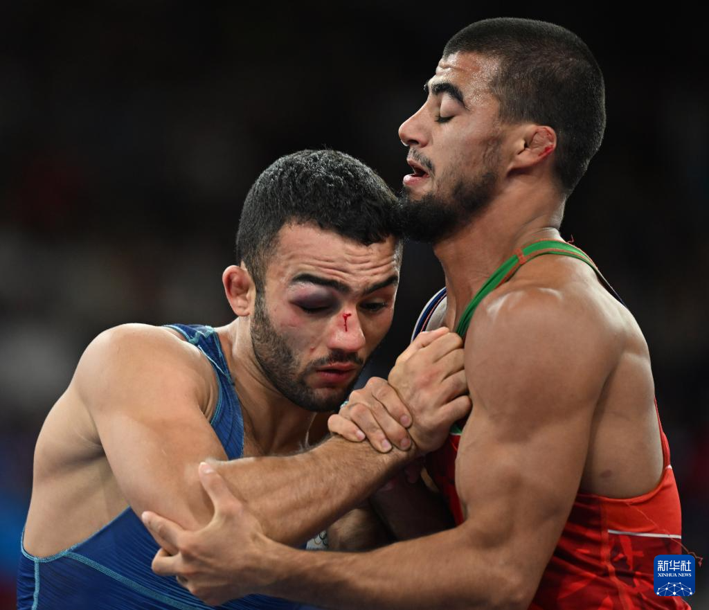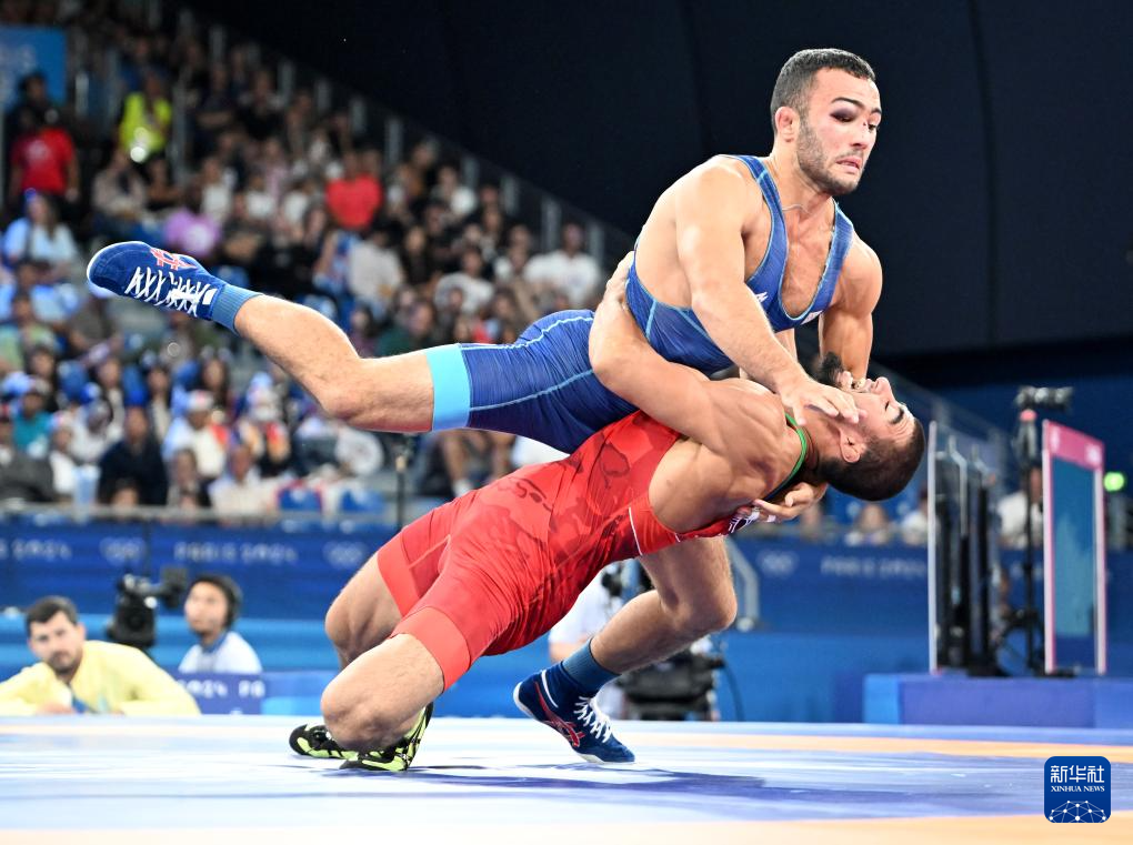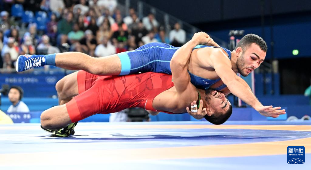 当日,巴黎奥运会摔跤男子古典式67公斤级半决赛在巴黎战神广场举行。