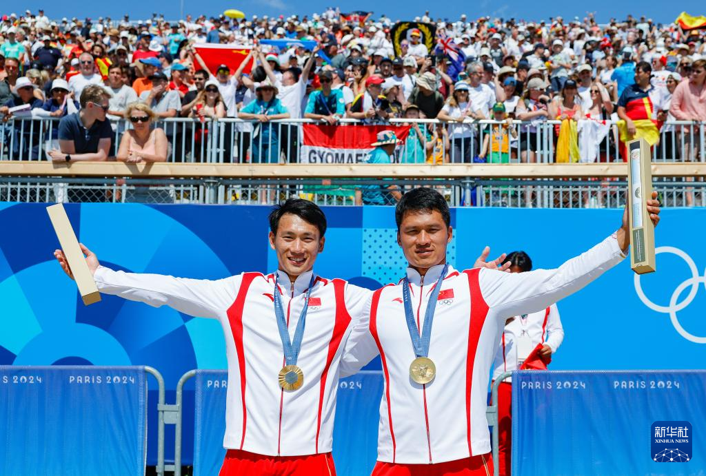 当日,在巴黎奥运会皮划艇静水男子双人划艇500米决赛中,中国选手刘浩、季博文夺得金牌。
