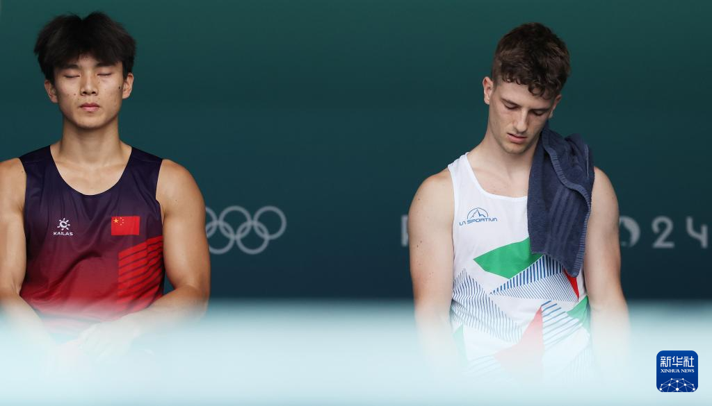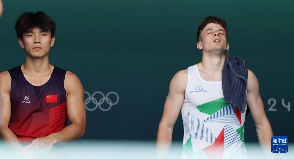 8月8日,中国选手伍鹏(左)与意大利选手祖尔洛尼在四分之一决赛前。最终,伍鹏获胜,晋级半决赛。新华社记者 高静 摄