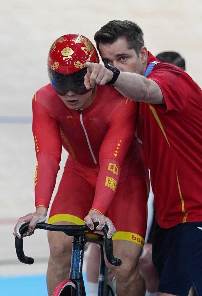 新华社巴黎8月7日电(记者姚友明)在7日的巴黎奥运会场地自行车男子争先赛中,杭州亚运会该项目亚军周瑜止步第二轮。次轮的复活赛甫一结束,记者本想第一时间和无缘晋级的他聊聊,结果他的教练西奥·博斯站出来及时制止:“他太累了,让他先缓一下,一会儿再回来。”