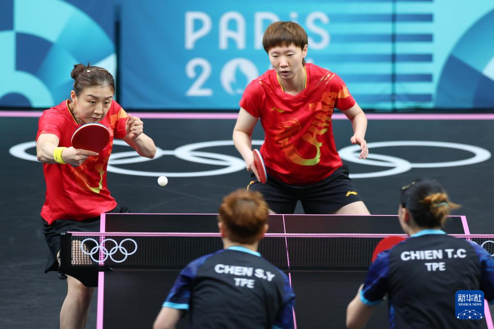 8月7日,中国队组合陈梦(左)/王曼昱在比赛中。她们3比0战胜中国台北队组合陈思羽/简彤娟。