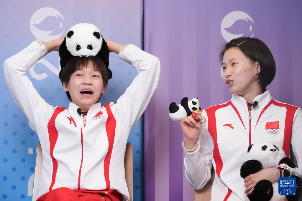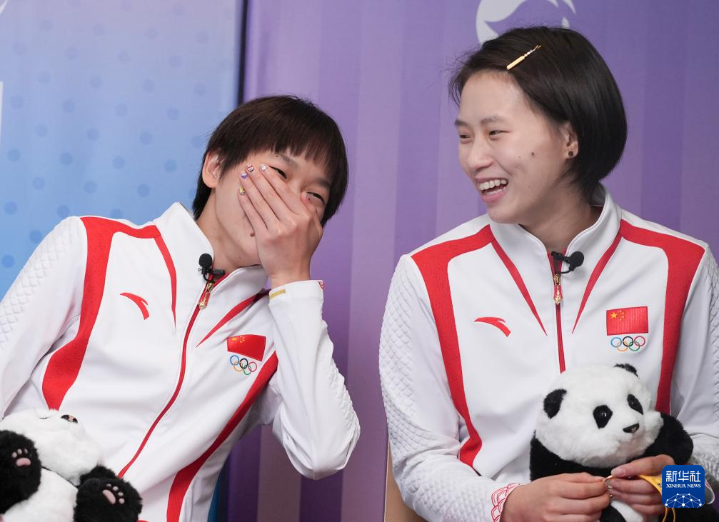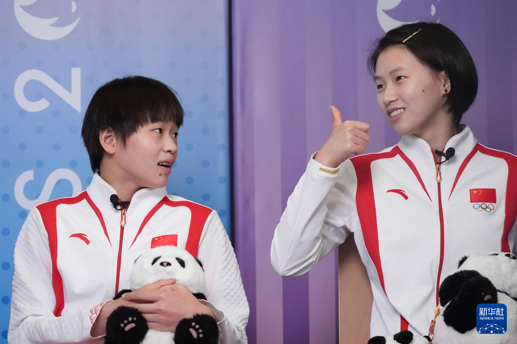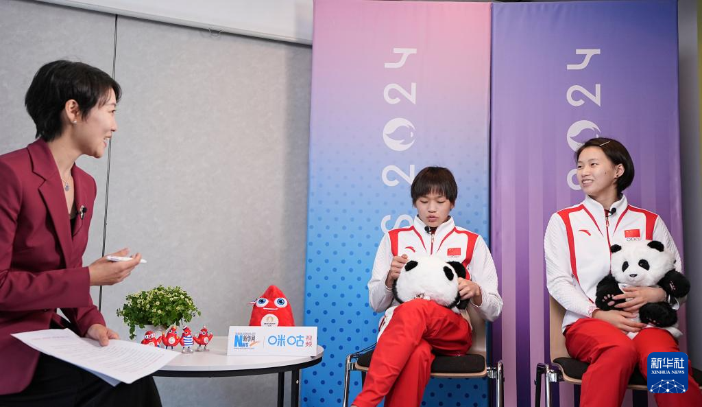 当日,中国跳水运动员全红婵、陈芋汐来到位于法国巴黎的新华社巴黎奥运会前方报道中心,接受新华社记者专访。
