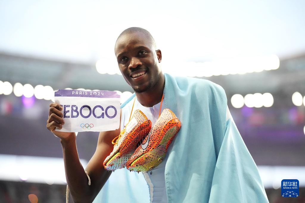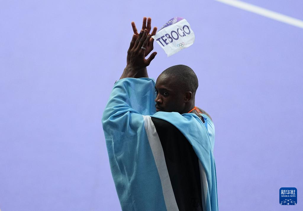 8月8日,冠军博茨瓦纳选手特博戈在赛后庆祝。