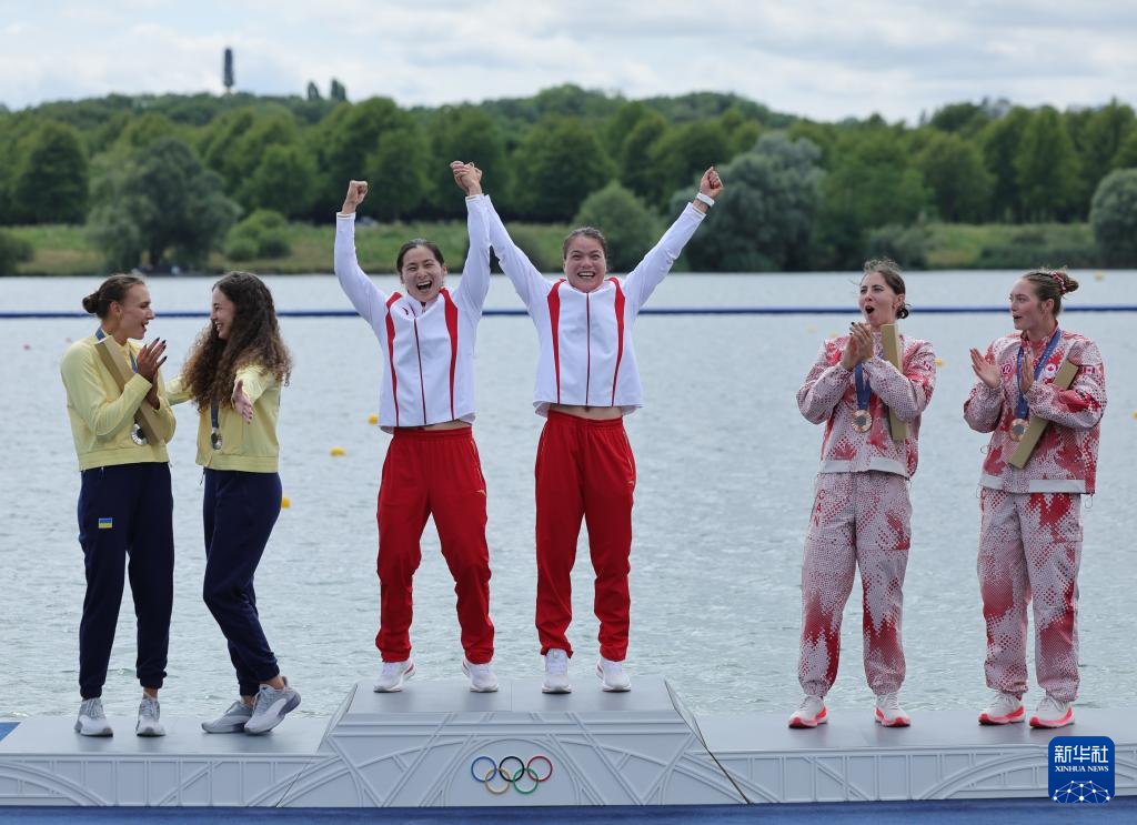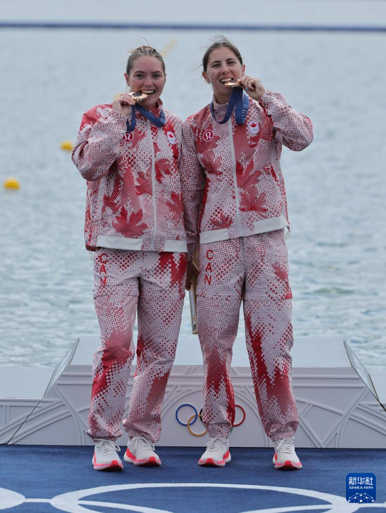 8月9日,季军加拿大组合斯隆·麦肯齐(左)/凯蒂·文森特在颁奖仪式上。新华社记者 沈伯韩 摄
