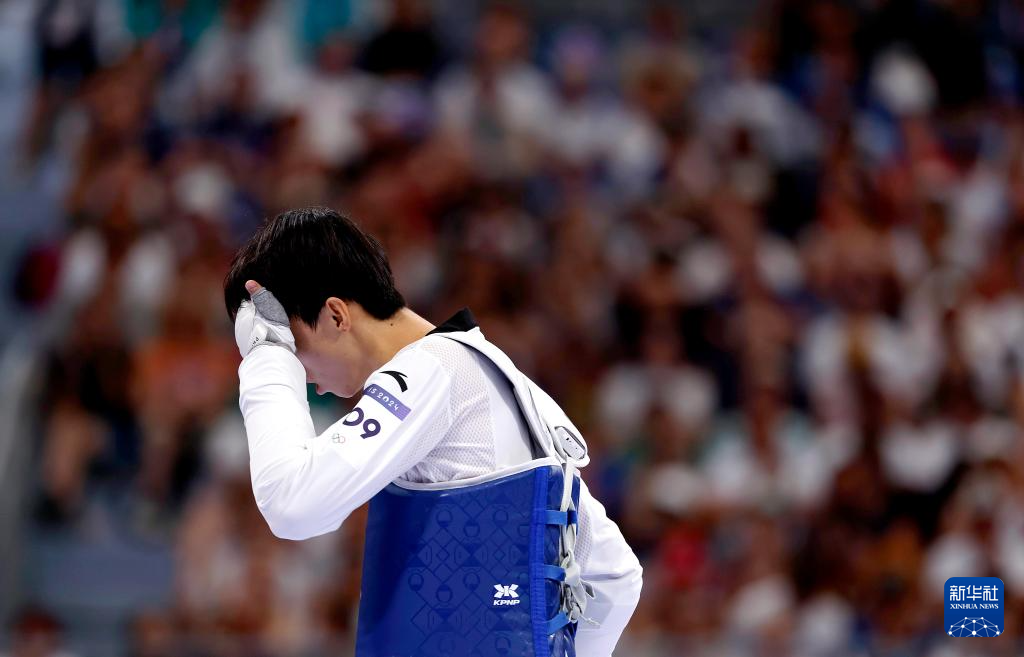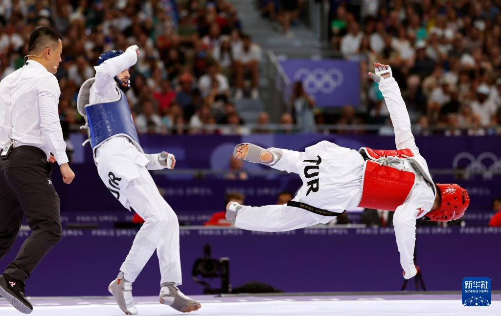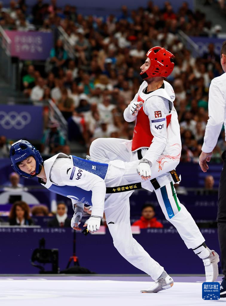 当日,巴黎奥运会跆拳道男子68公斤级四分之一决赛在巴黎大皇宫举行。