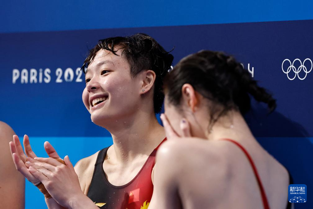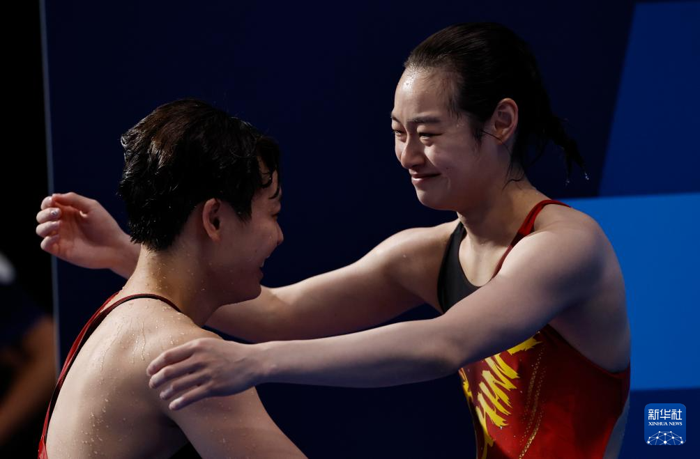 8月9日,中国选手陈艺文(右)在比赛后。新华社记者 王鹏 摄