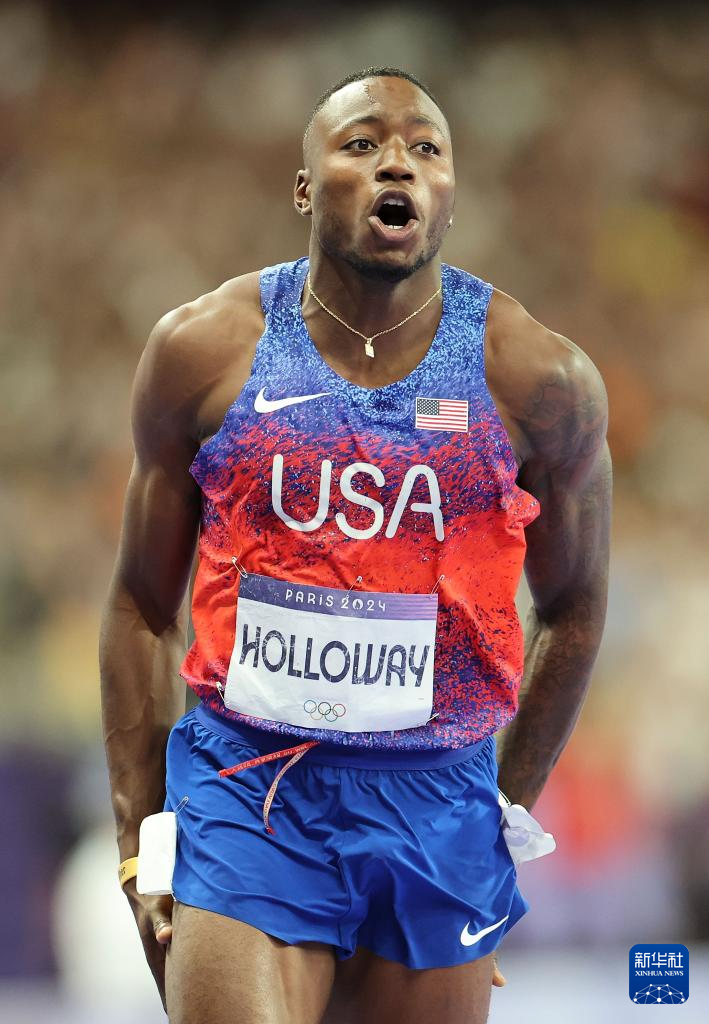 8月8日,冠军美国选手霍洛韦在比赛后。