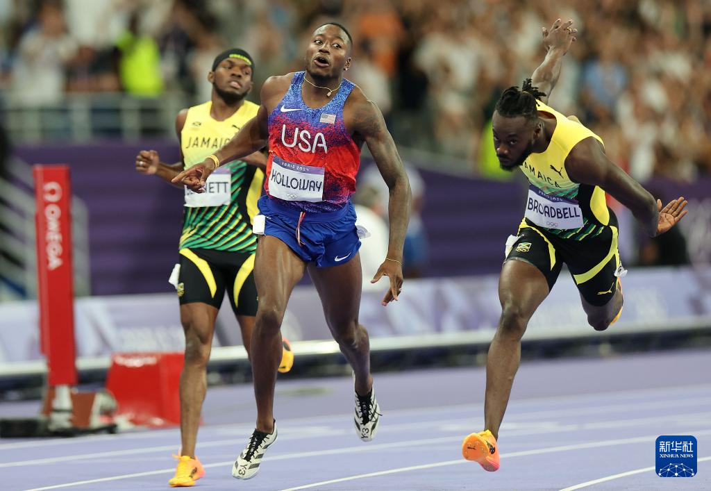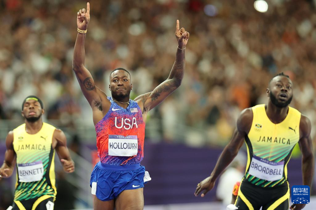 8月8日,冠军美国选手霍洛韦(中)在比赛后庆祝。