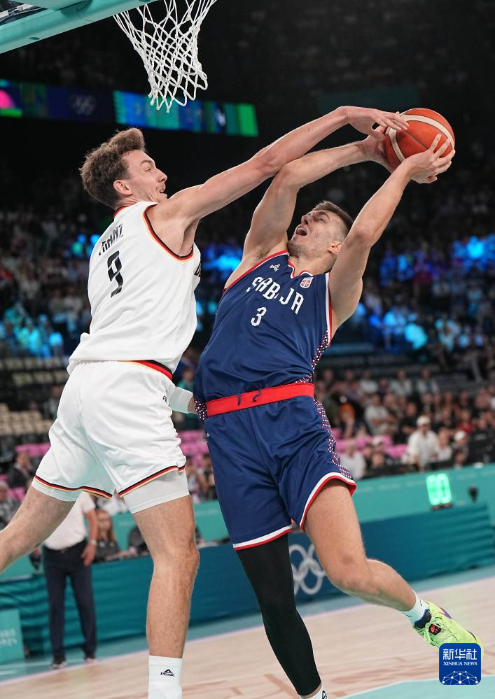 当日,在巴黎贝尔西体育馆进行的巴黎奥运会男子篮球铜牌赛中,塞尔维亚队93比83战胜德国队,获得铜牌。