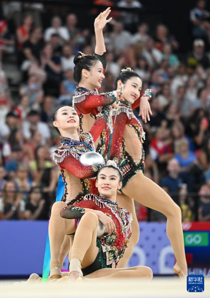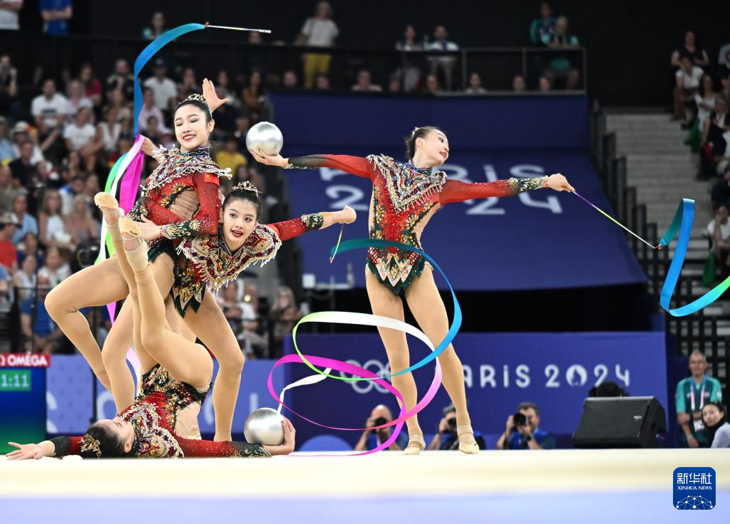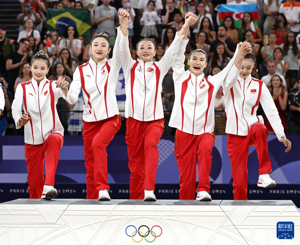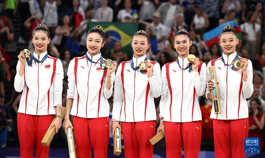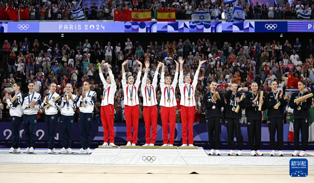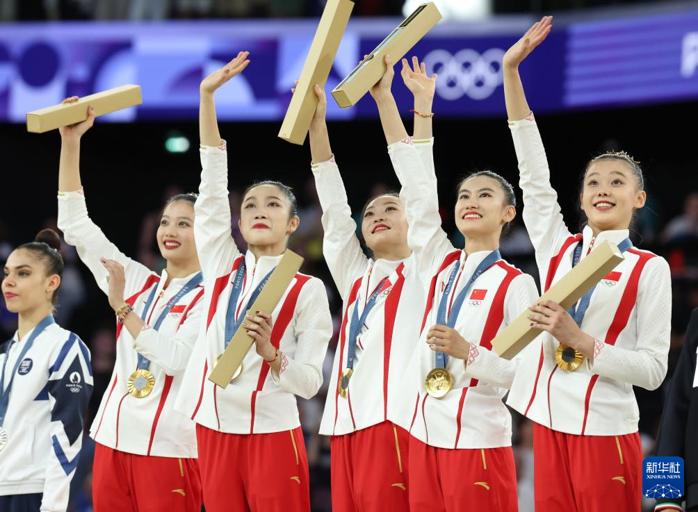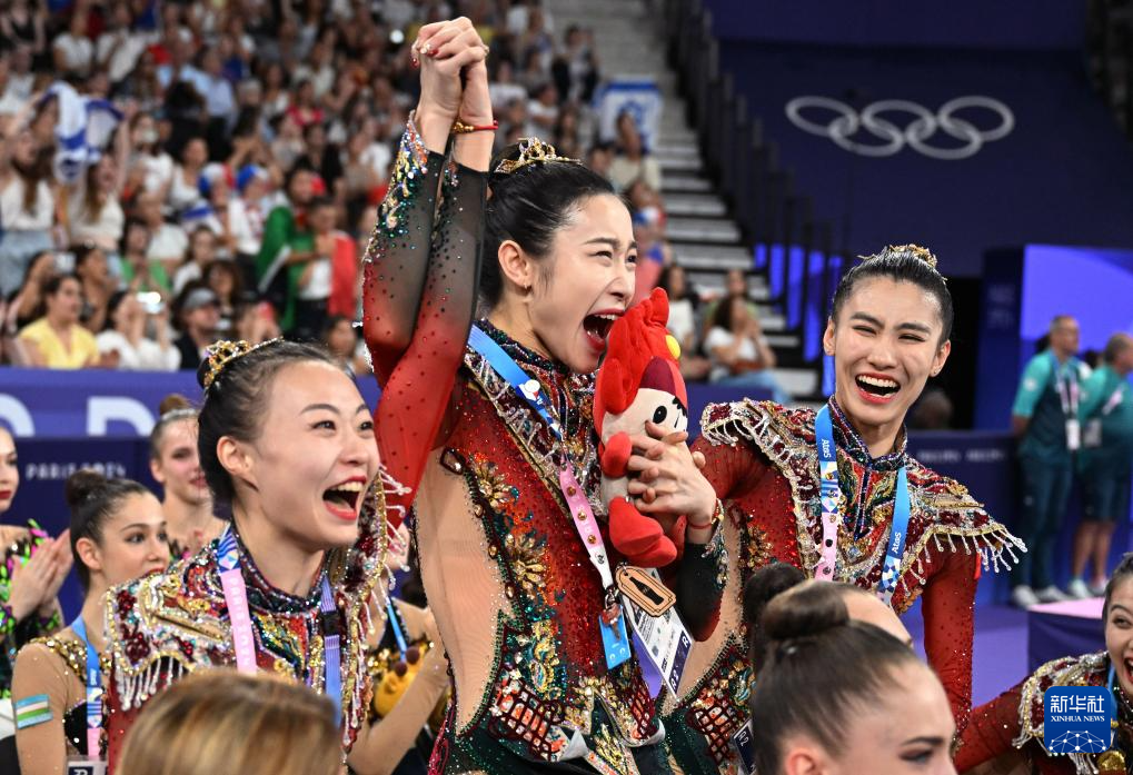当日,在巴黎奥运会艺术体操项目集体全能决赛中,中国队获得冠军。