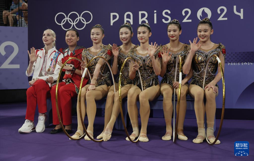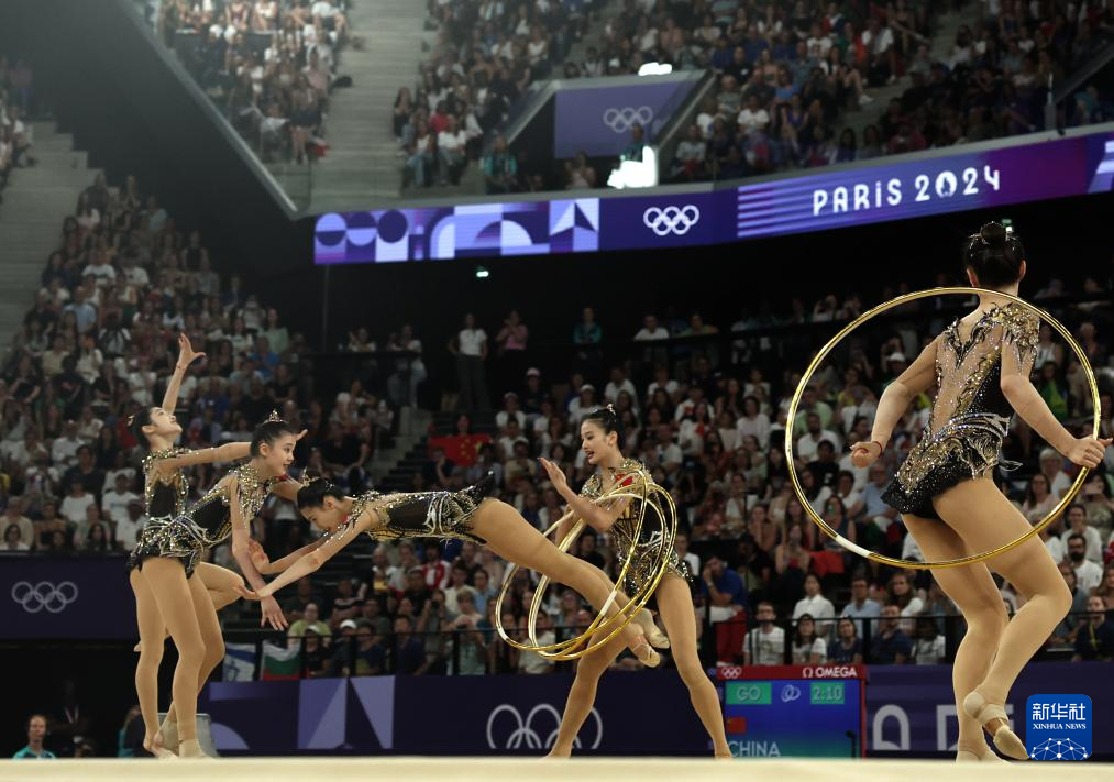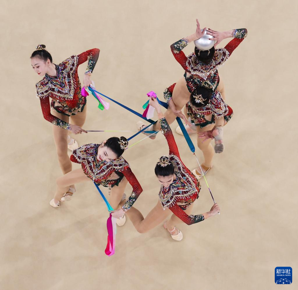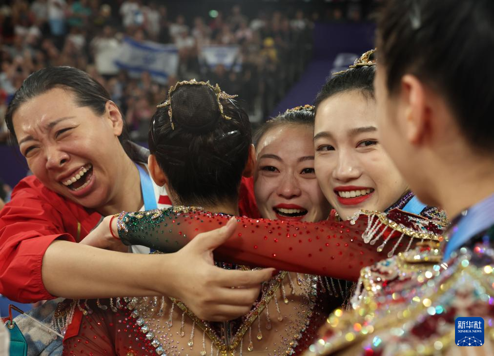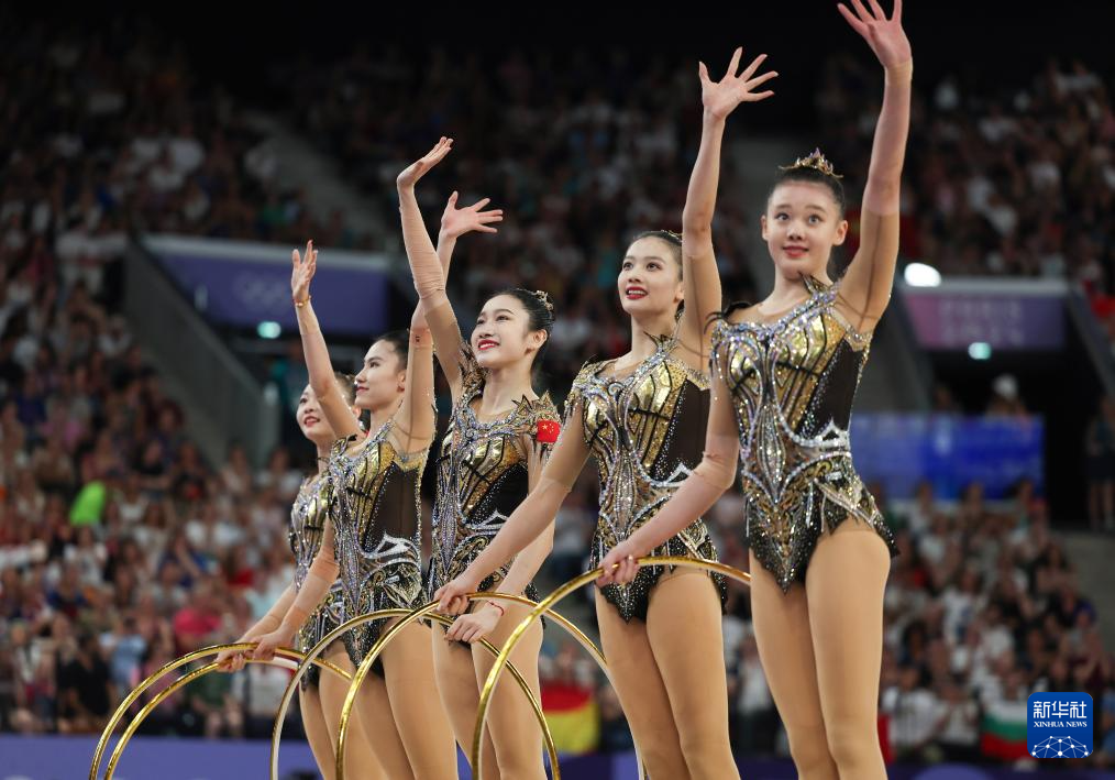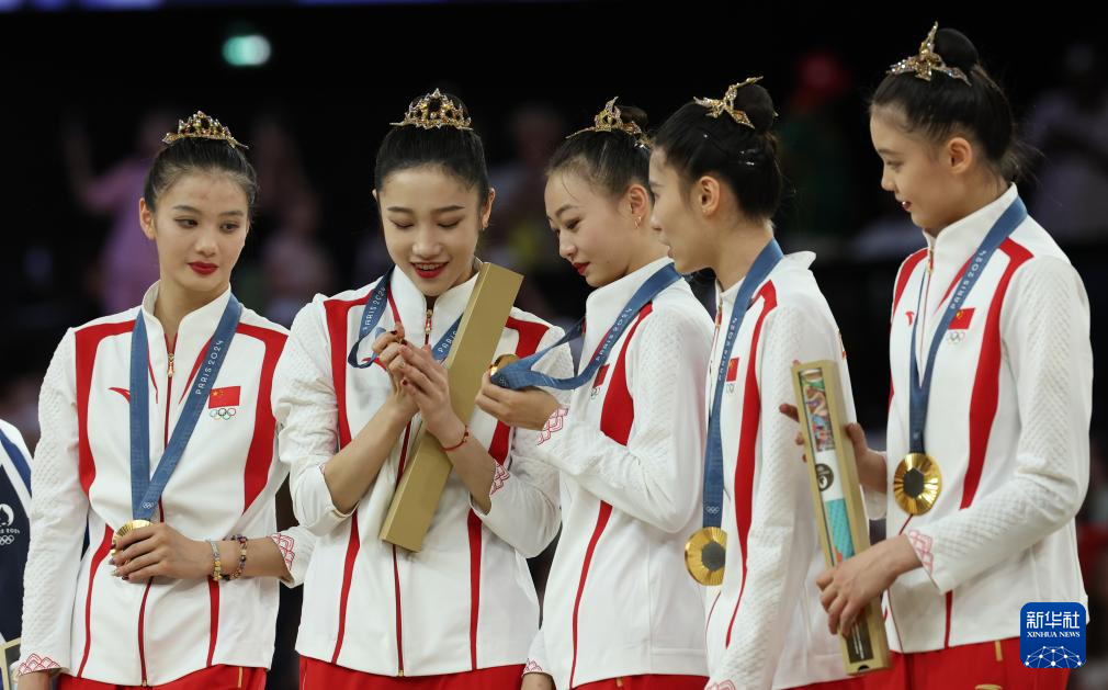 当日,在巴黎奥运会艺术体操项目集体全能决赛中,中国队获得冠军。